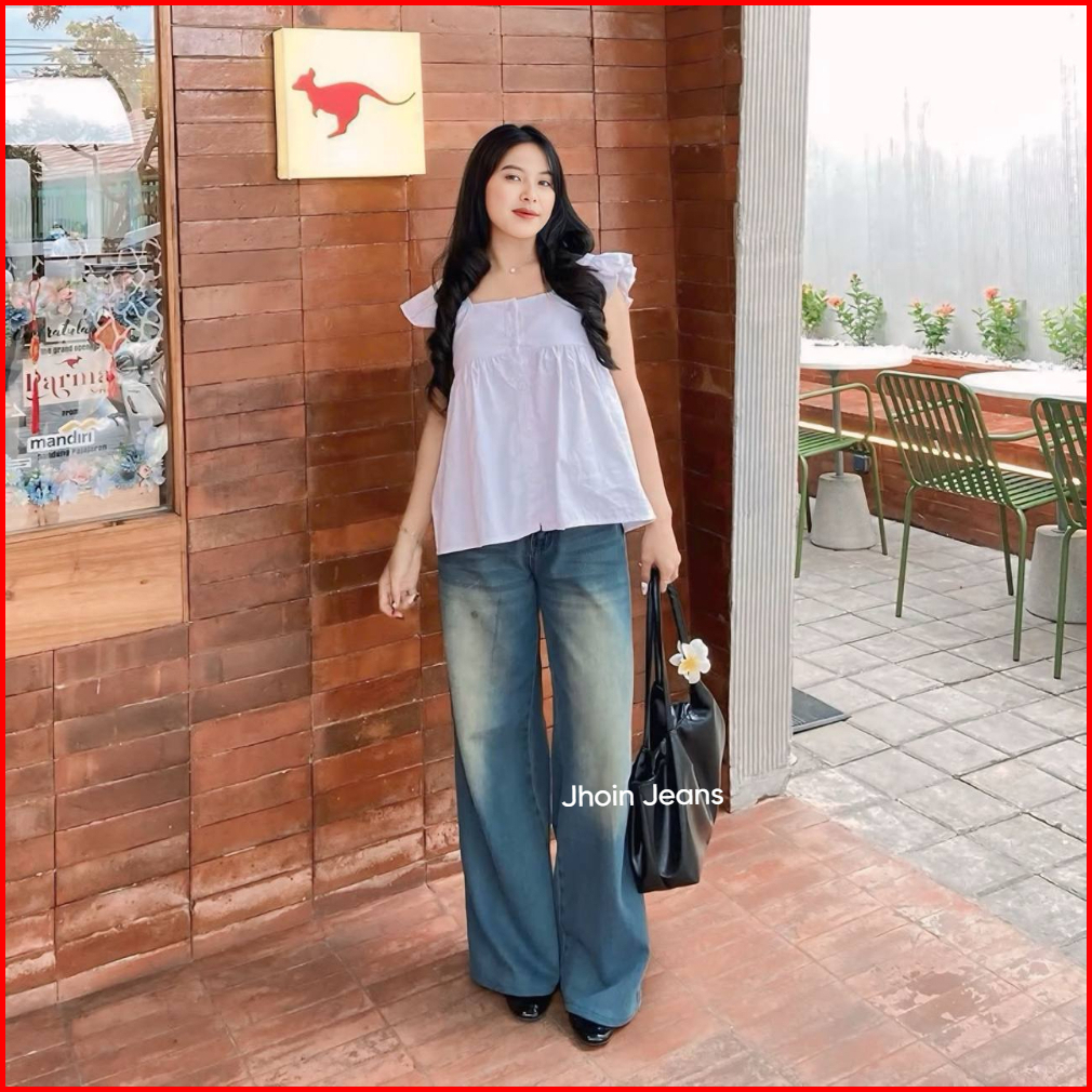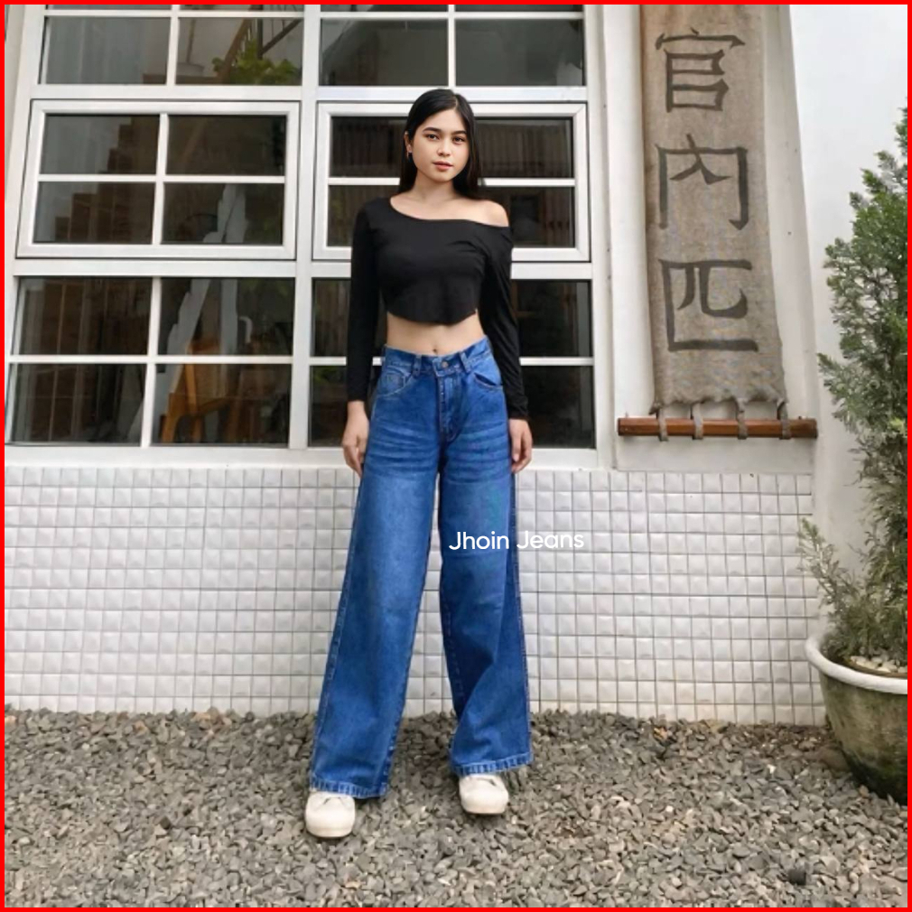 Jhoin Fashion - Celana Highwaist Baggy Jeans Wanita Premium Quality Kulotloose Skena Terbaru