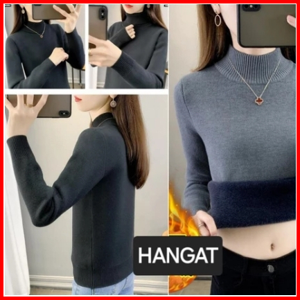 Long John Wanita Pakaian Musim Dingin Atasan Saja Turtleneck Sweater Wanita Thermal Rajut Turtleneck Thermal Tebal Winte