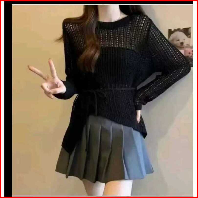 Yuruma Sweater Rajut Jaring Tali Knitwear Premium Wanita Atasan Wanita
