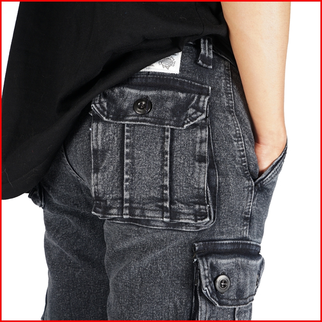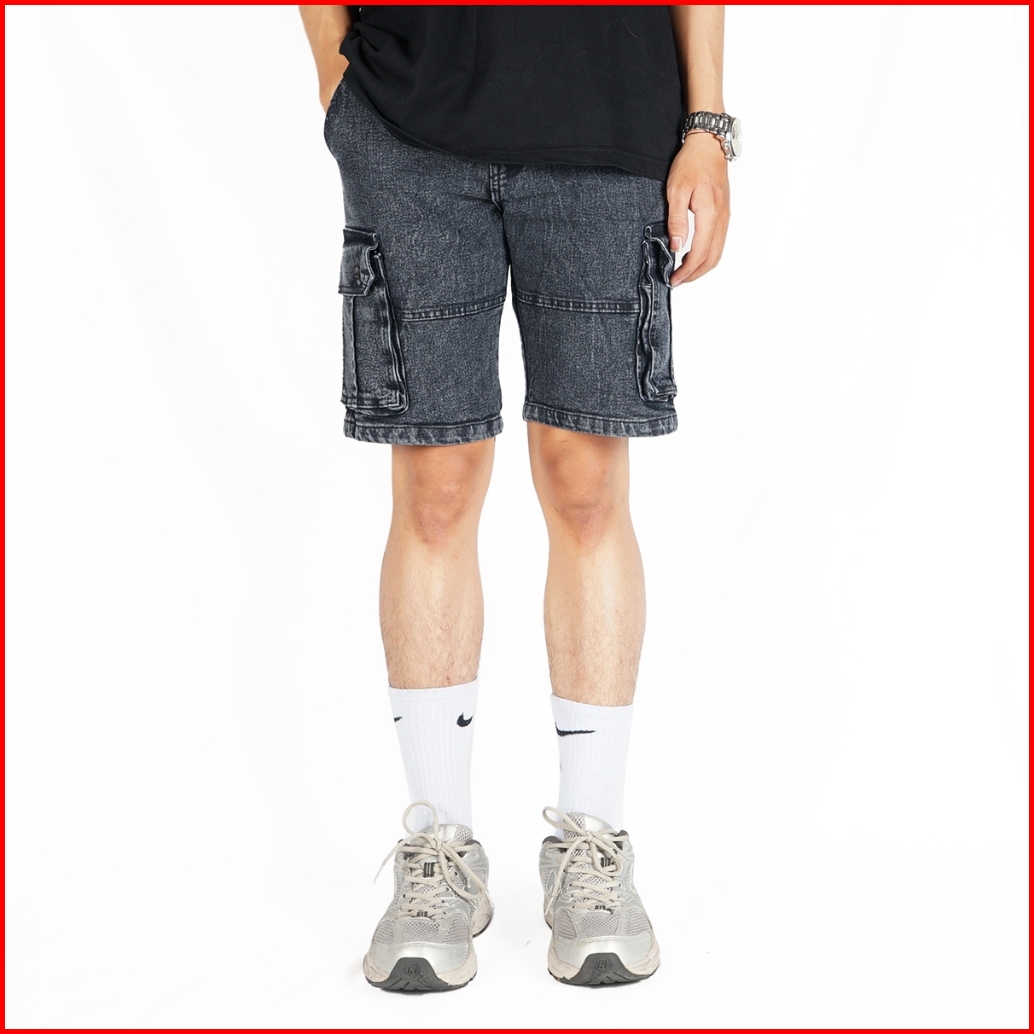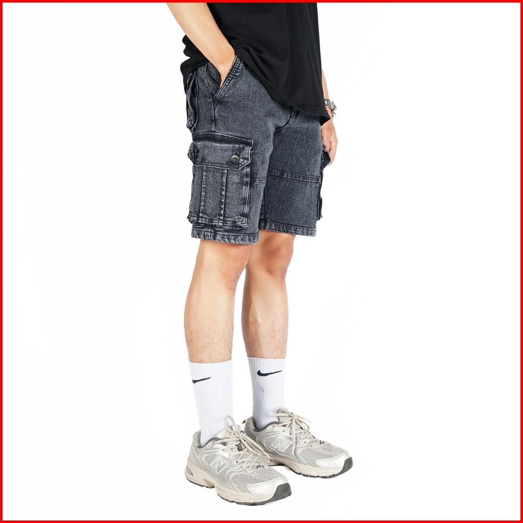 Nvsr Jeans Short Cargo Washed Pants Black Washed