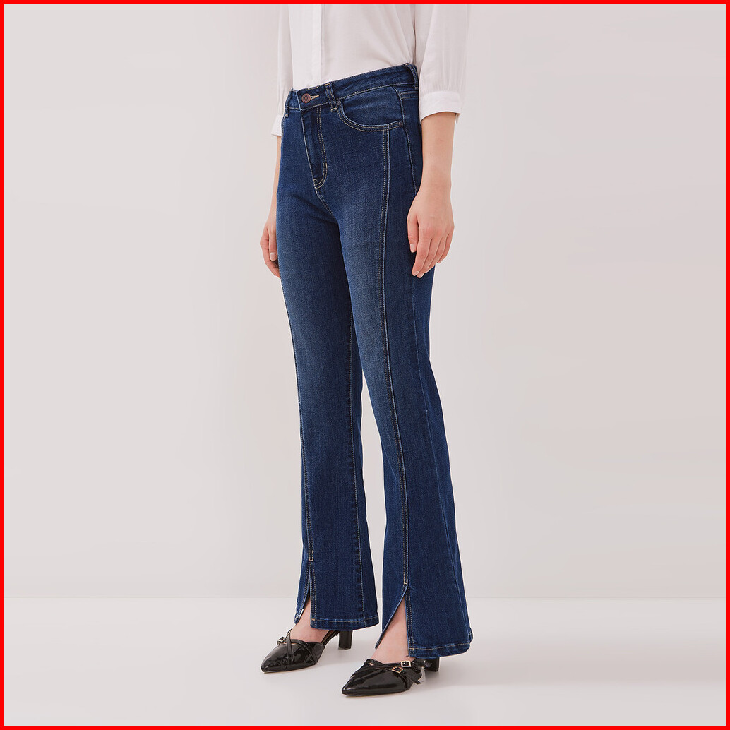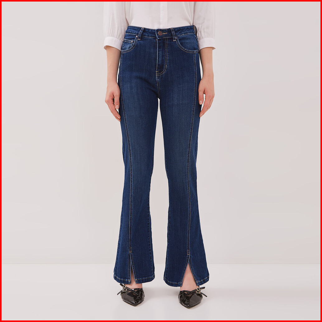 Dust Celana Split Flare Jeans Radina Medium Dark Blue D.3836