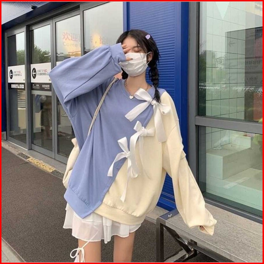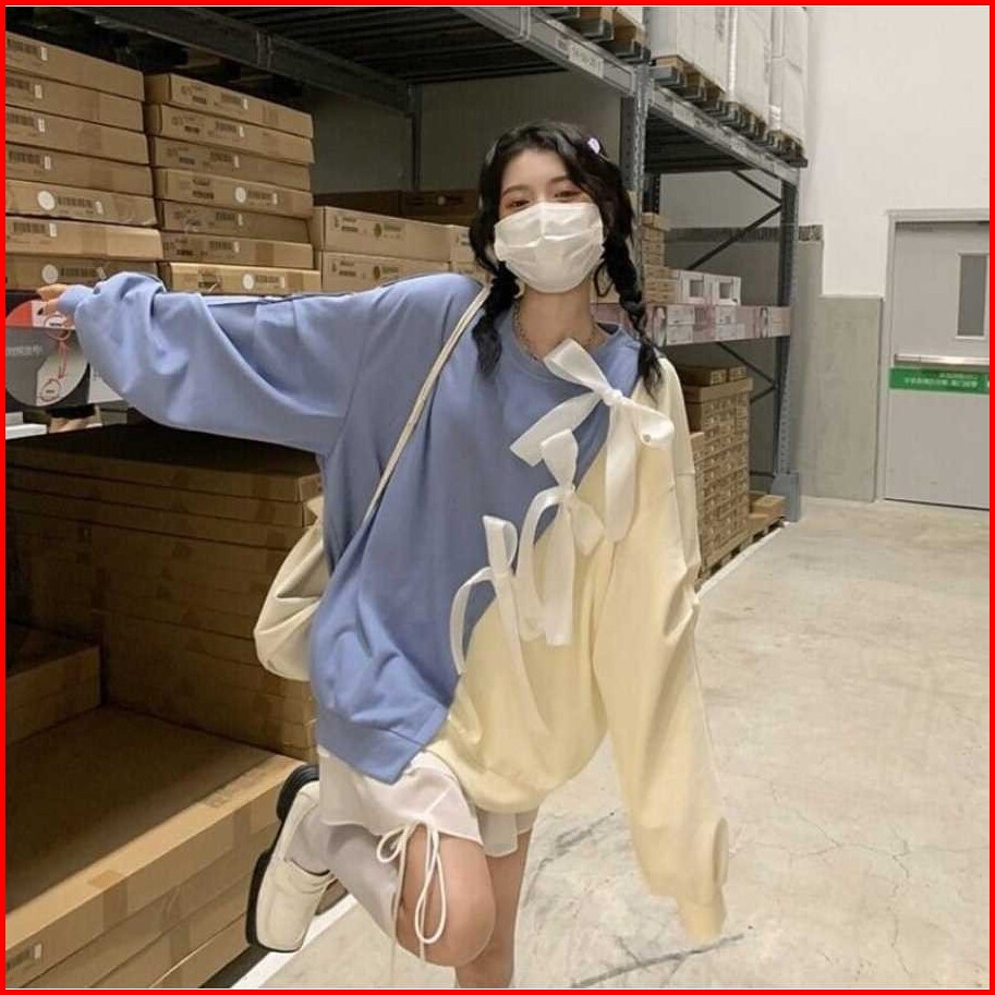 Tape Combie Sweater Oversize Wanita Korean Style - Crewneck Sweater Wanita