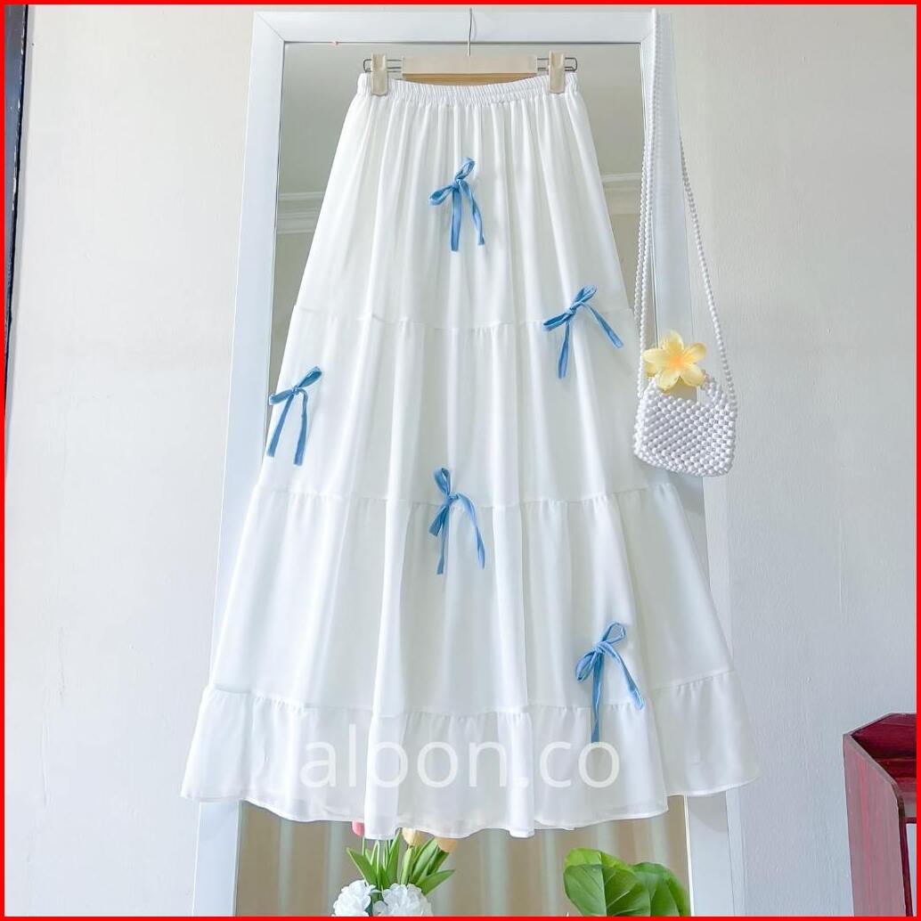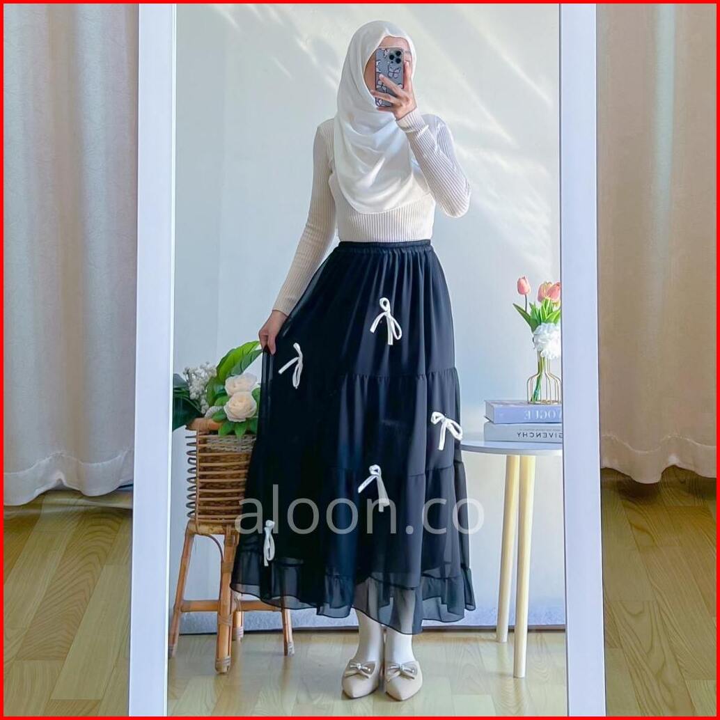 Freya Rok Midi Ruffle Pita Ceruty Babydoll Premium Rok Rempel Wanita Korean Style