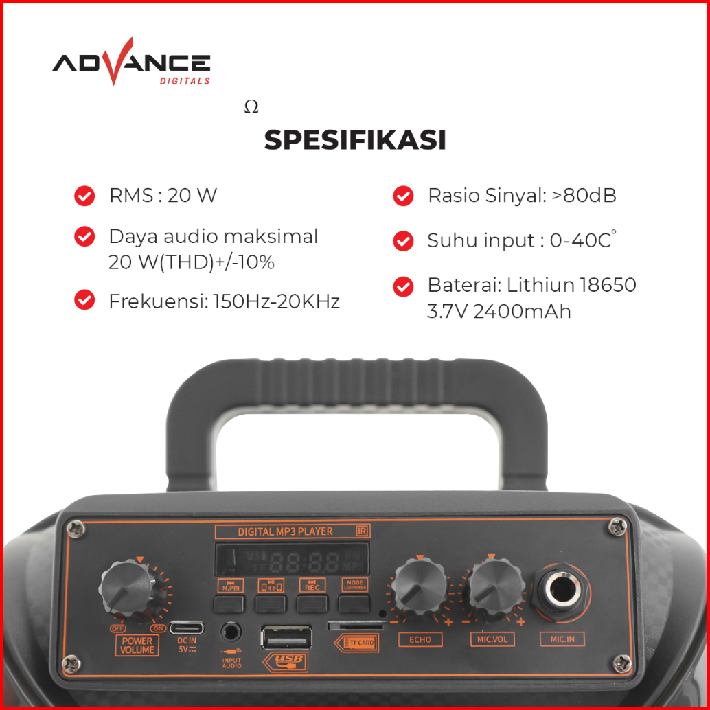 Advance S80 Speaker Portable Bluetooth Free 1 Microphone Wireless Exrta Power Sound Garansi 1 Tahun