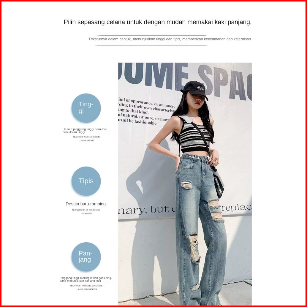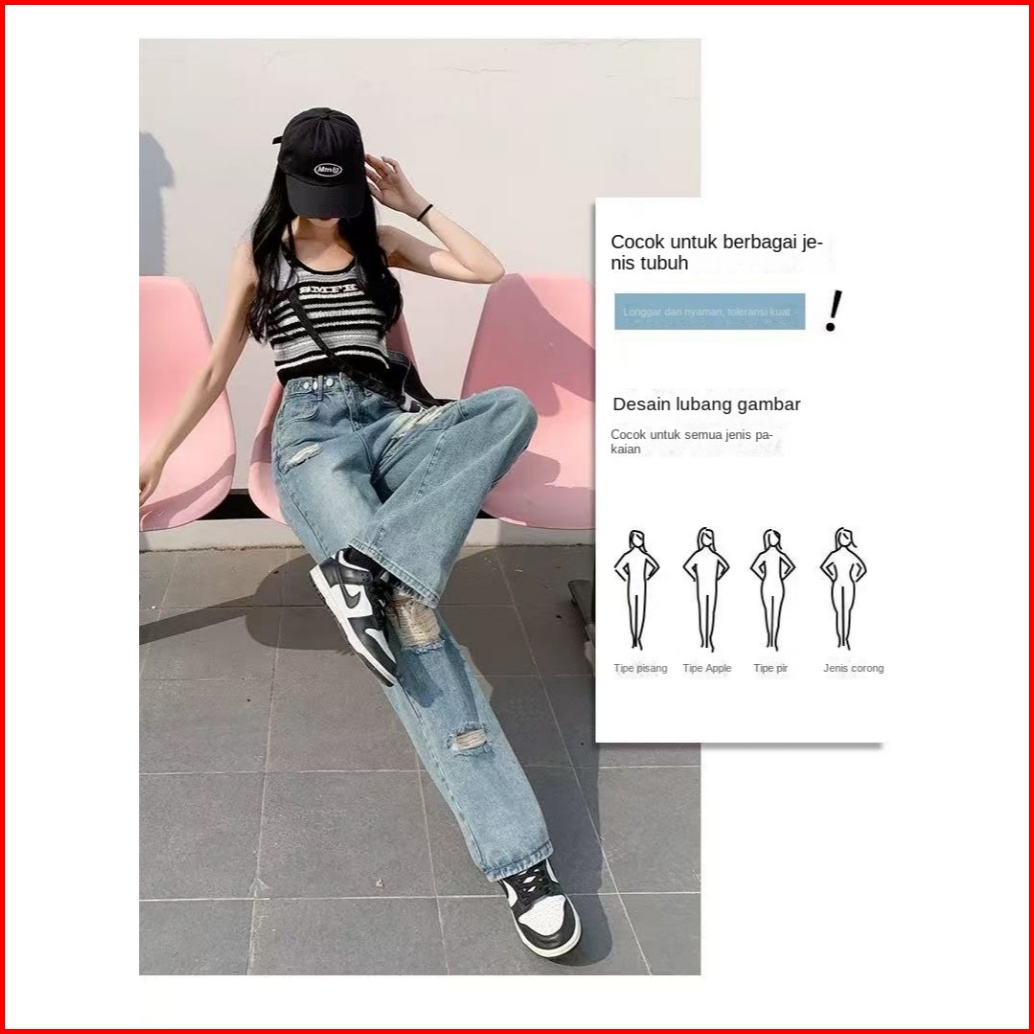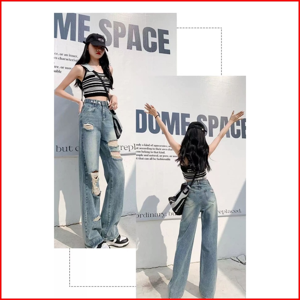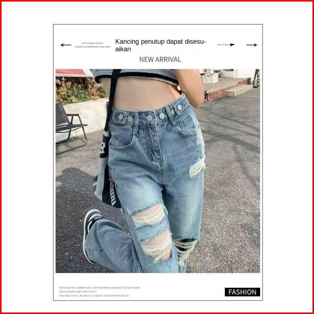 Uni And Glow Celana Jeans Wanita Highwaist Ripped Denim Trendy Untukmu