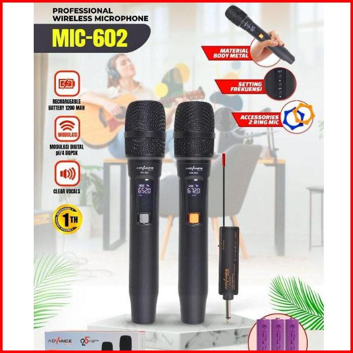 Advance Mic-602 Profesional Dual Microphone Wireless Garansi Resmi 1 Tahun
