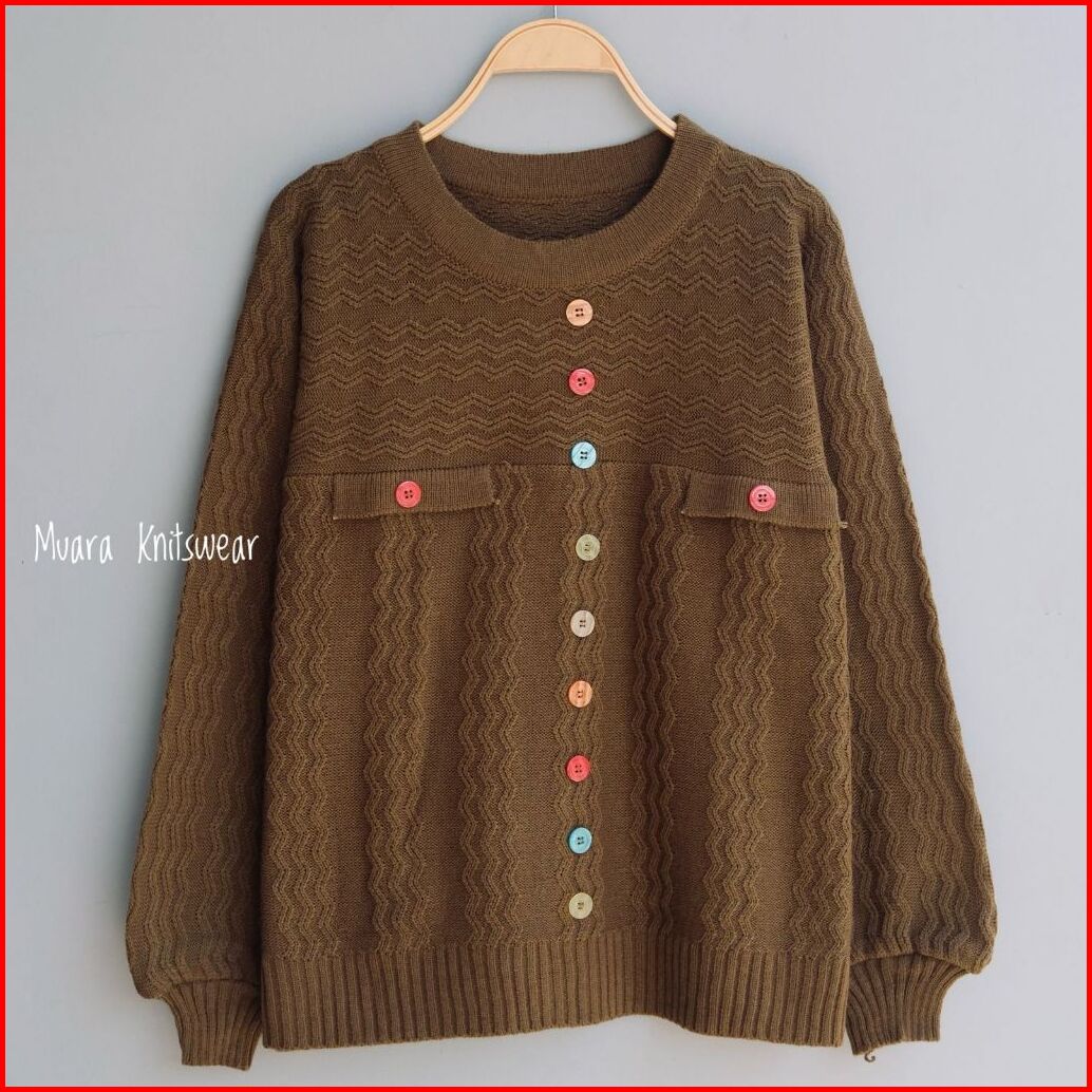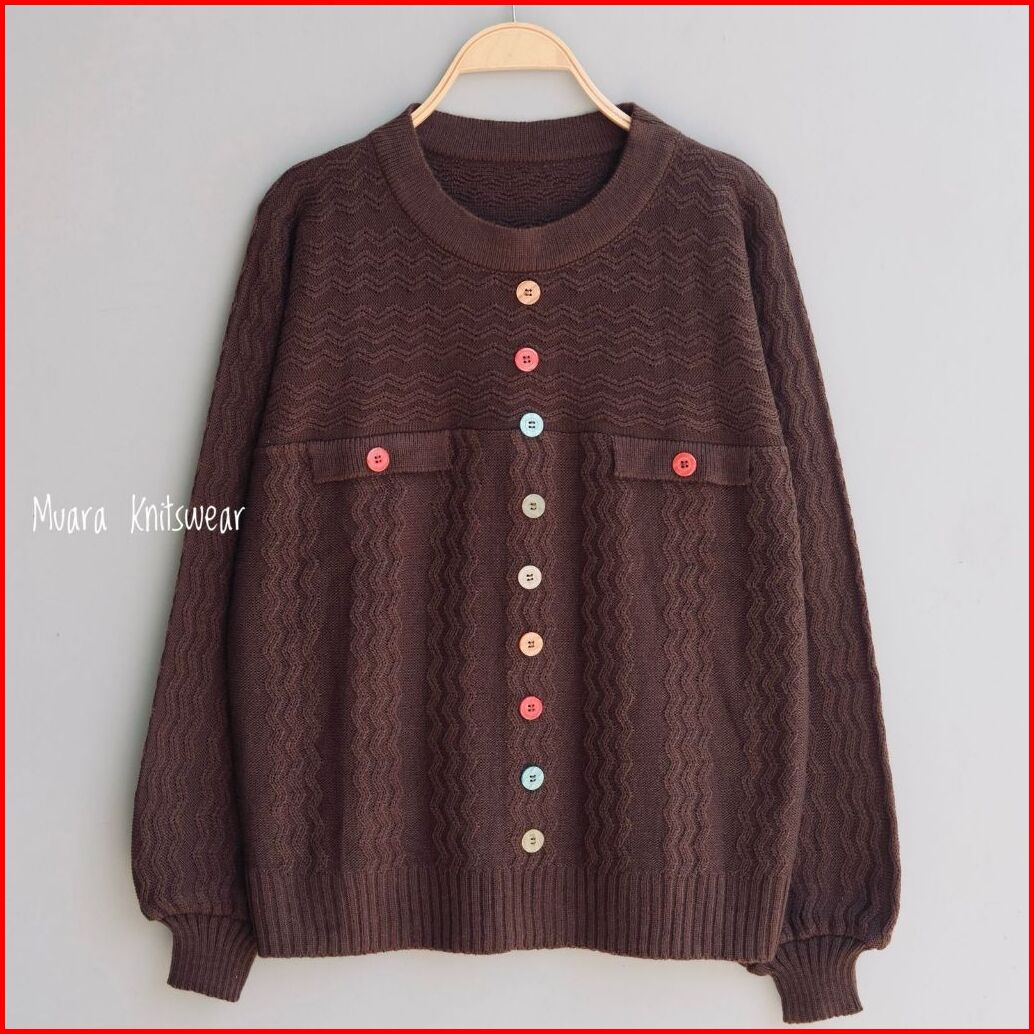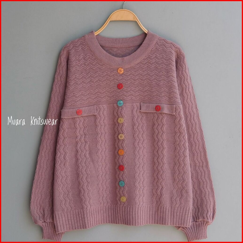 Muara Knitswear Sweater Rajut Motif Cable Kancing Warna Wanita Korea Lengan Panjang