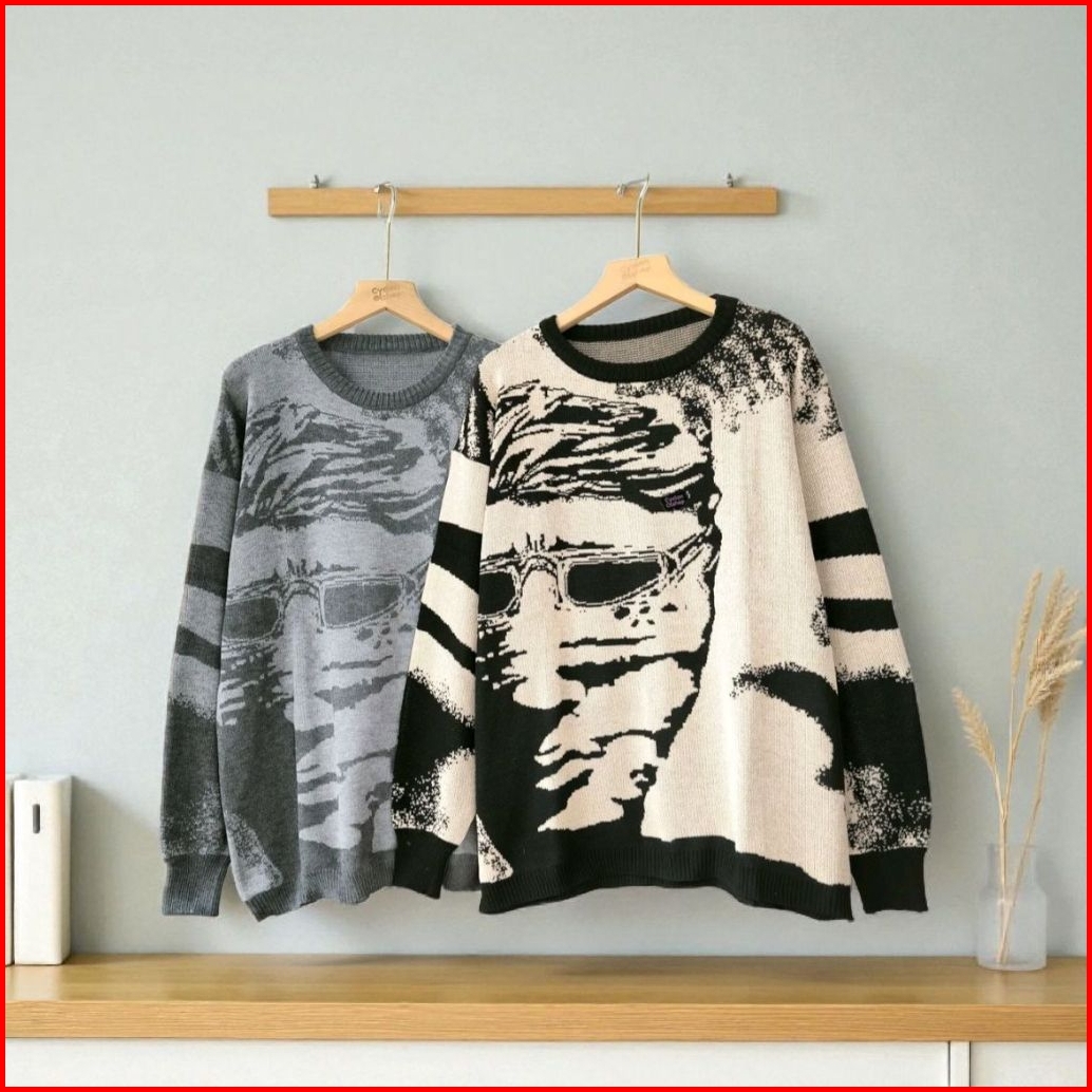 Sweater Rajut Premium Knitwear- Baju Atasan Pria Wanita Motif Abstrak
