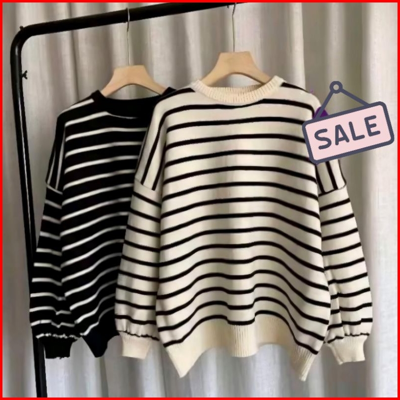 Bayoneta Sweater Knit Rajut Premium Wanita Grosir Seweater Rajut Stripe Lengan Panjang Wanita Terbaru Baju Atasan Knit R