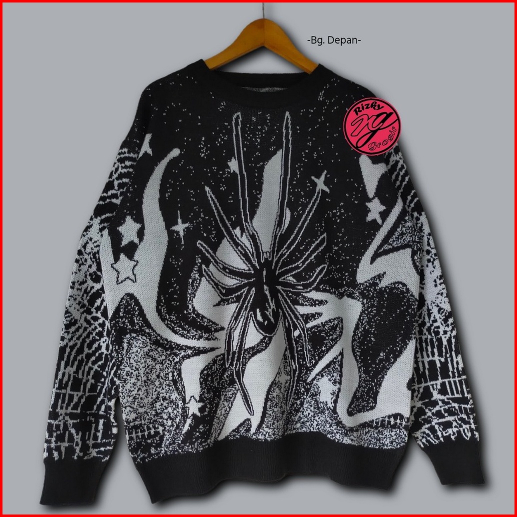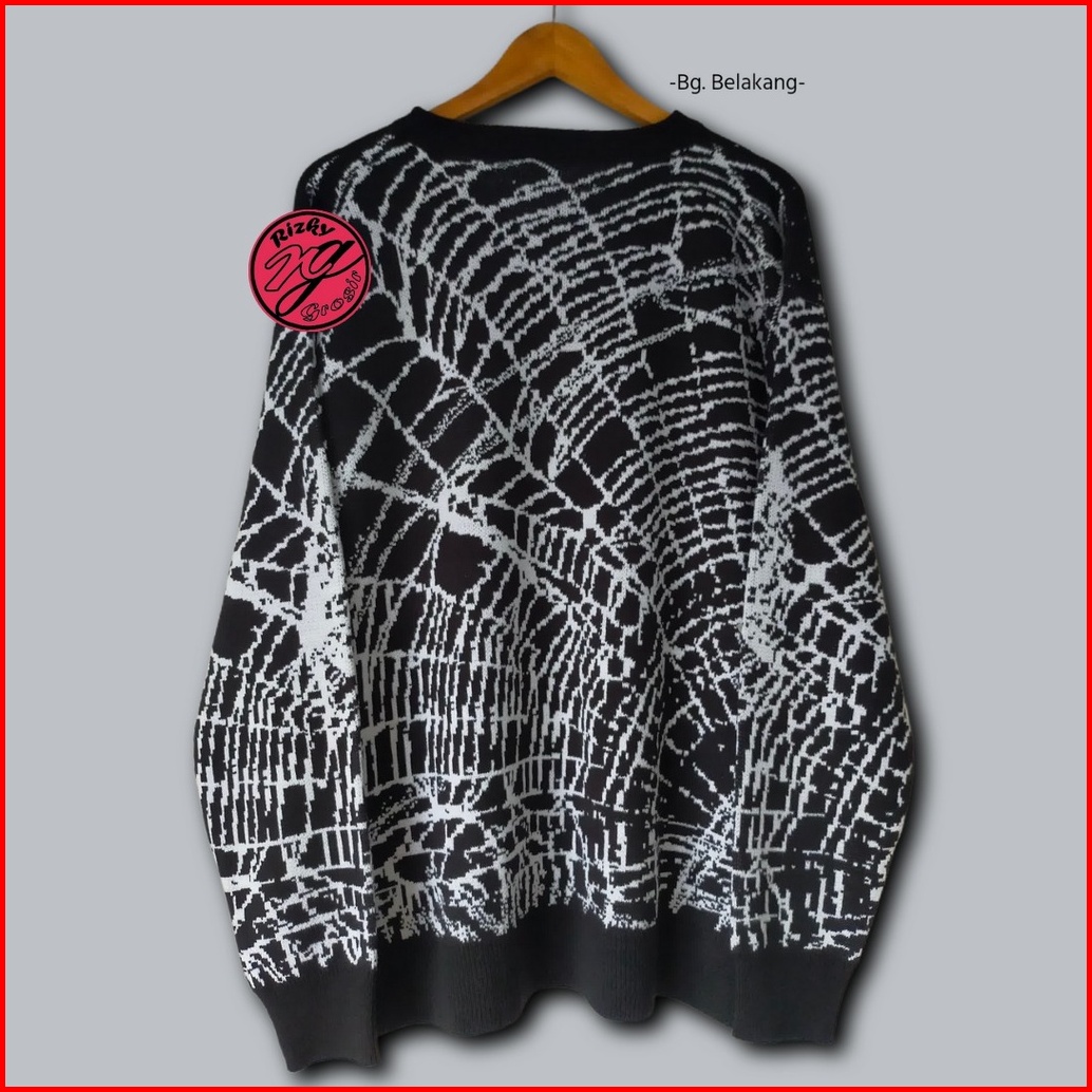 Najahstore Officials Spider Web Sweater Atasan Rajut Pria Wanita Motif Premium Versi Full Motif