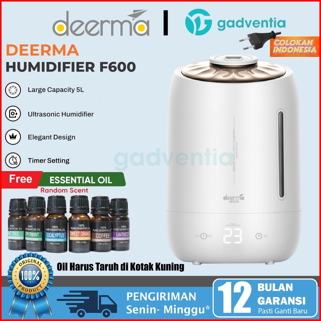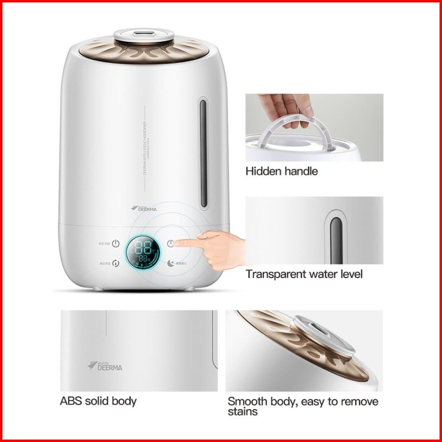 Deerma F600 Air Humidifier Ultrasonic 5l Touch Screen Pelembab Udara Ruangan Kantor Kamar Oil Aromaterapi