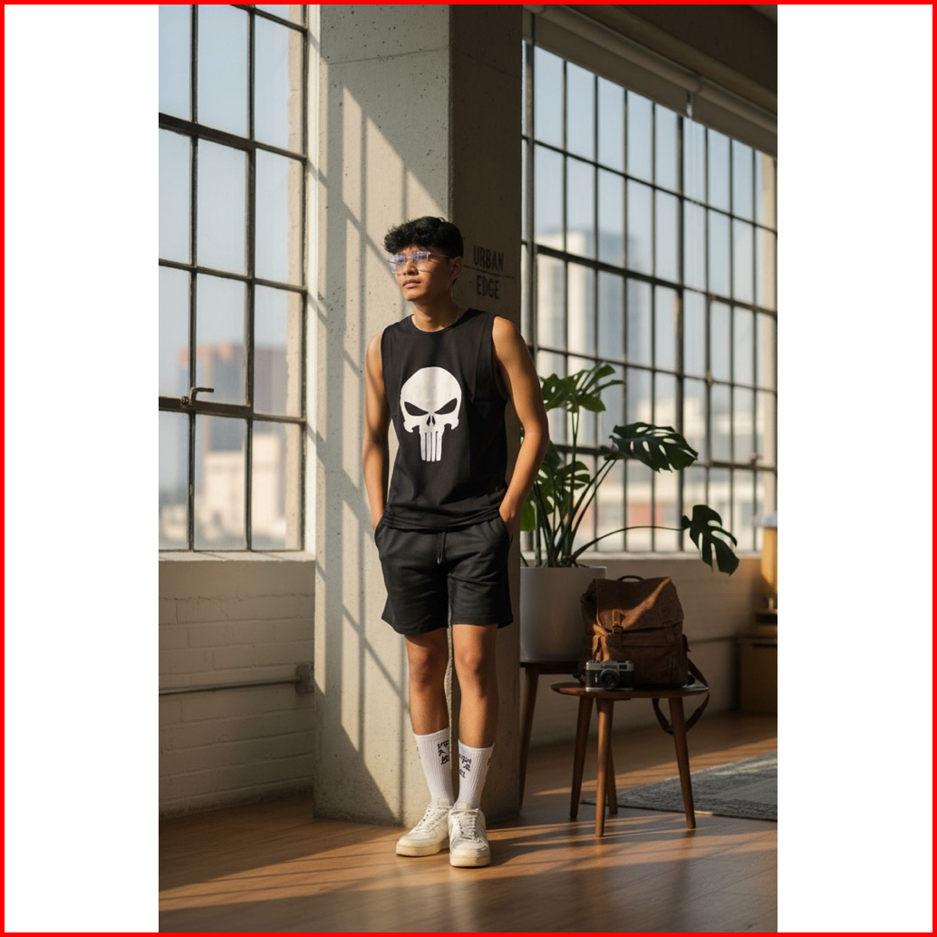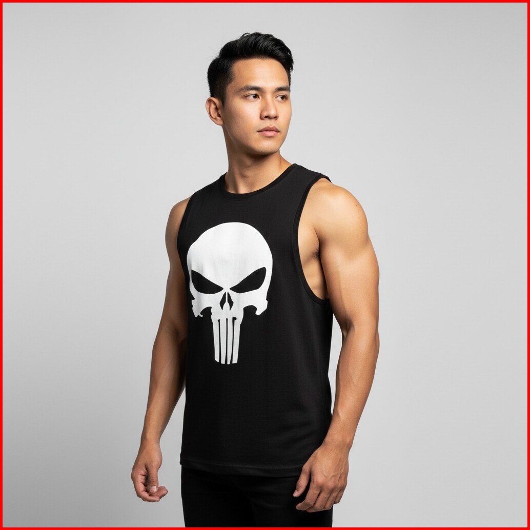 Singlet Pria Katun Lekbong Premium Santai Singlet Gym Guano Punisher Kaos Tanpa Lengan