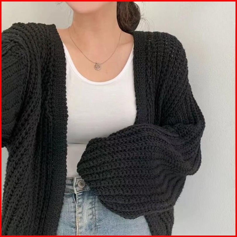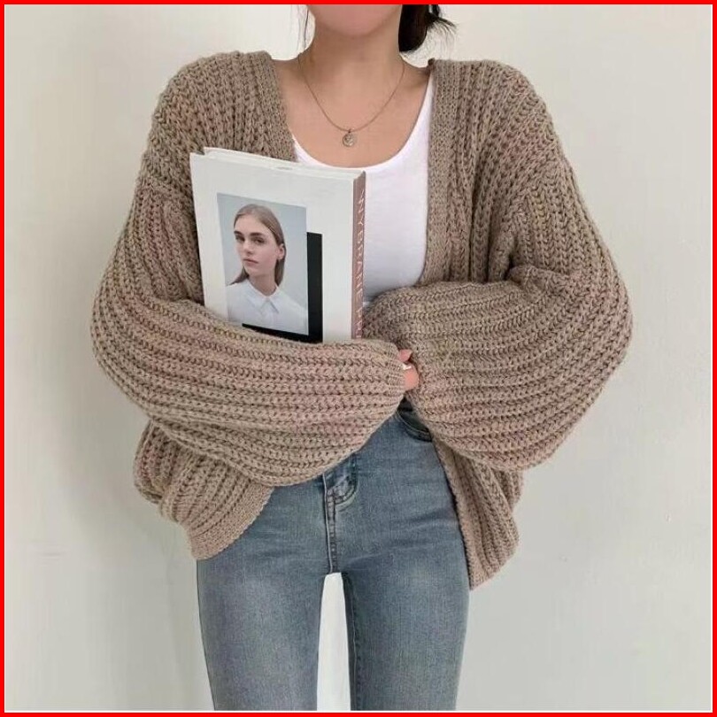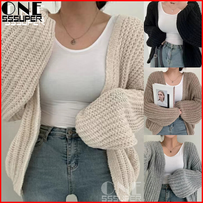 Sweater Rajut Lengan Panjang Wanita Ala Korea Sweater Rajutan V-neck Retro Sweater Rajutan Pendek Warna Solid Sweter Raj