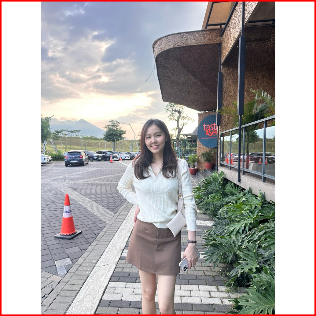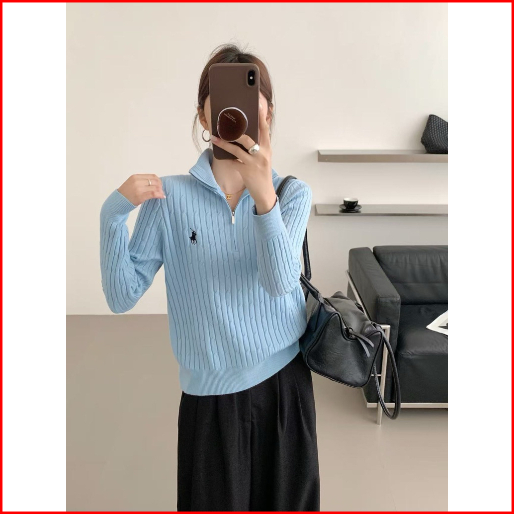 Marie Sweater Zip Long Sleeve Motif Cable Knit Finelle Rajut Lengan Panjang Atasan Wanita