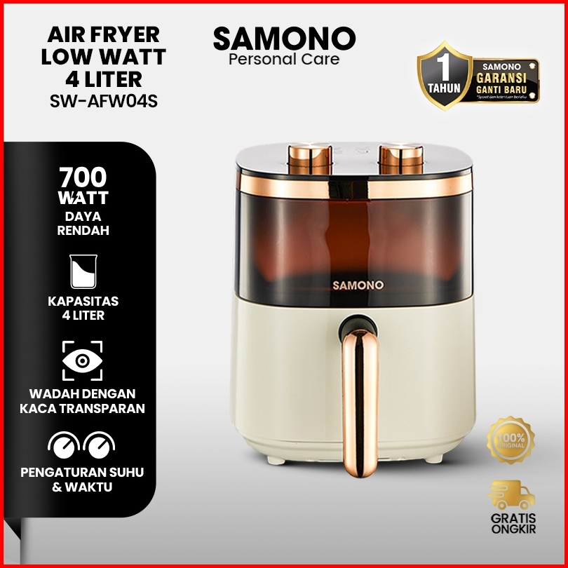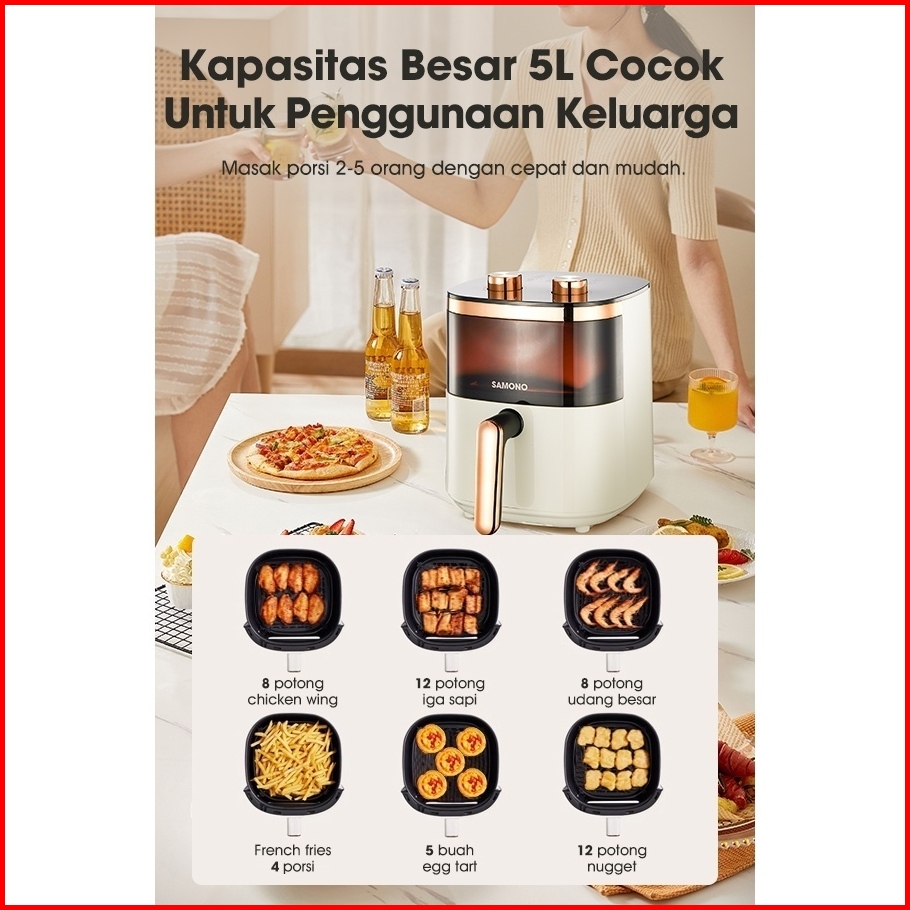 Samono Air Fryer Transparan 4 Liter 700w Sni Hemat Daya Mesin Menggoreng Tanpa Minyak Kapasitas 4 Liter Dengan Tray Kaca
