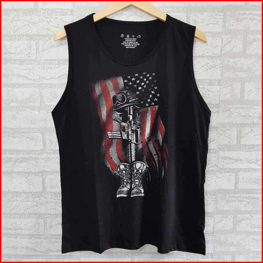 Shopaoi - Singlet Kaos Tanpa Lengan Kaos Dalam T-shirt Distro Singlet Army Flag Pria Murah