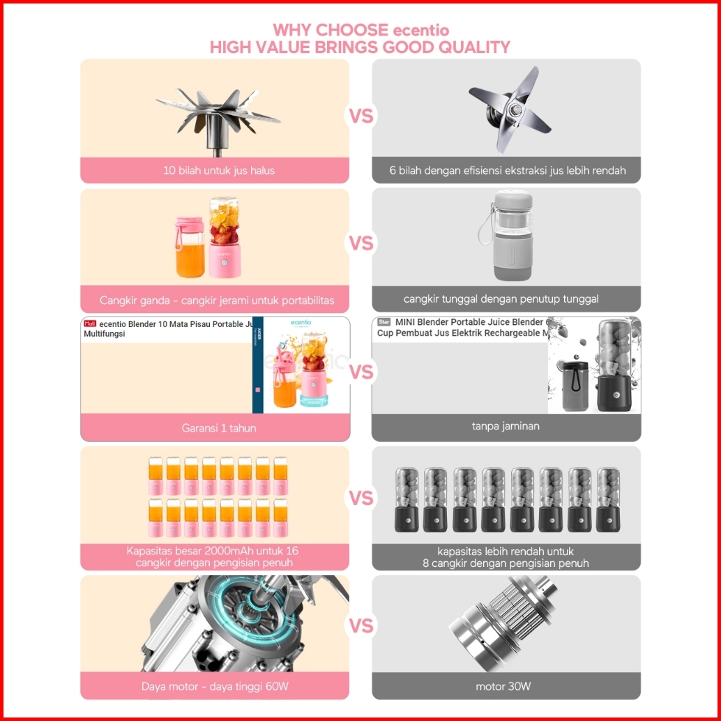 Ecentio Juicer Portable 10 Pisau Juicer Buah Tanpa Ampas 380ml 380ml Blender Jus Buah Juicer Hand Blender Blender Jus Bl