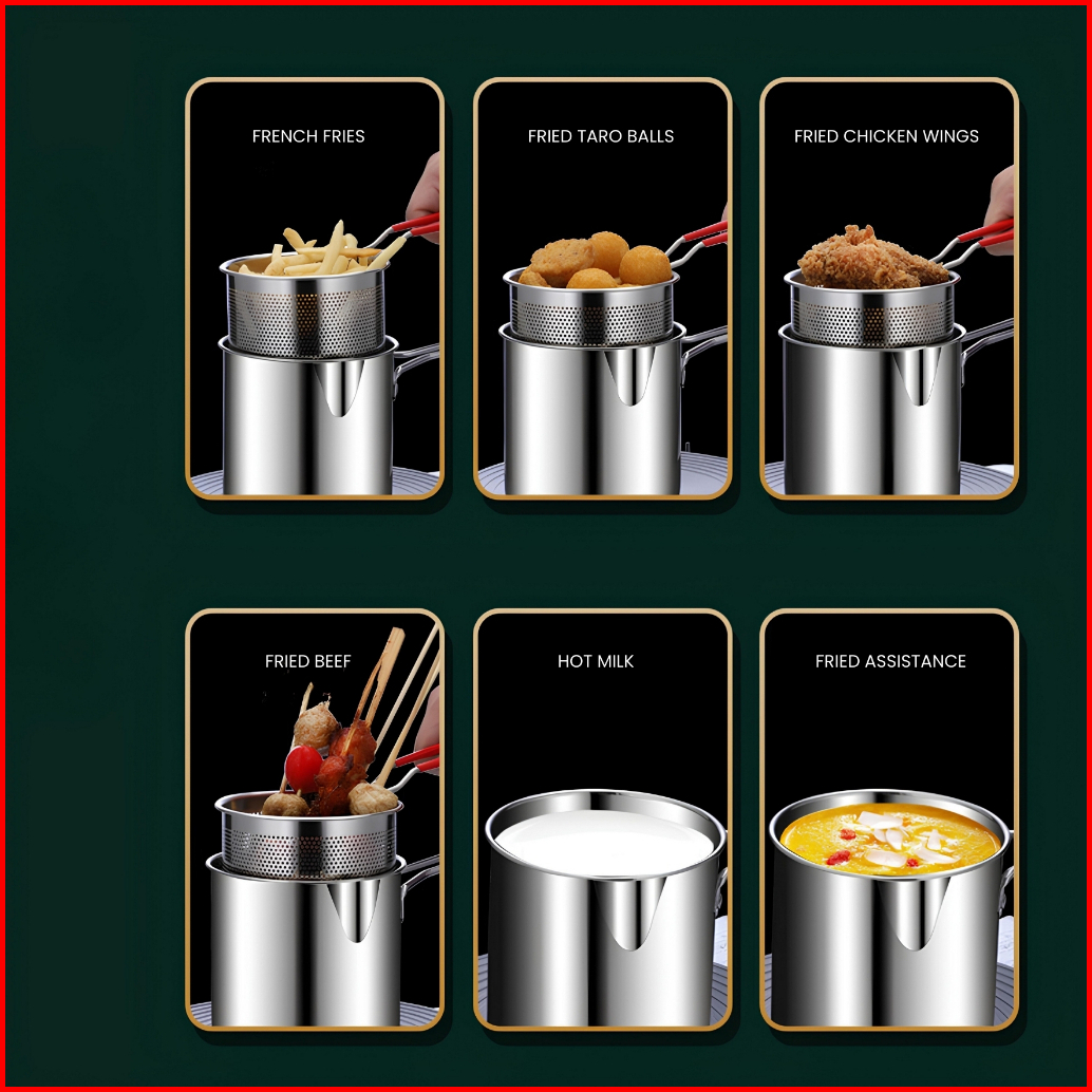 Sunland Panci Multifungsi 4 In 1 Deep Fryer Set Penggorengan Rebus Stainless Saringan Capitan Klip