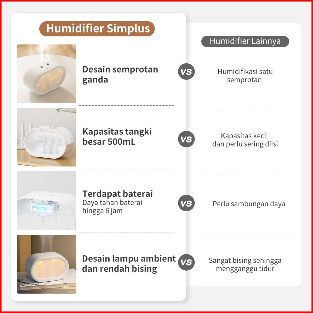 Simplus Pink Humidifier Desktop Diffuser 500ml With Type-c Charging Port
