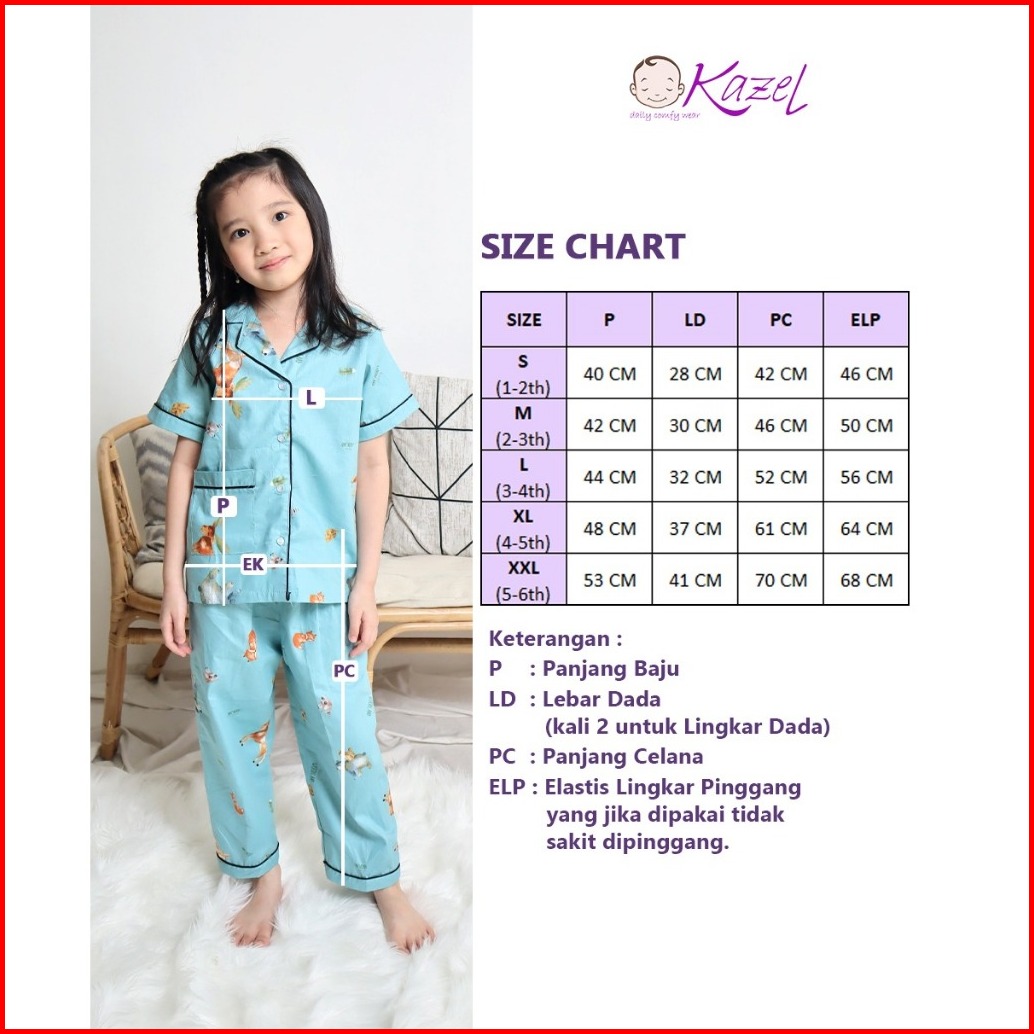 Kazel Luxury Piyama Katun Jepang Babysaurus Woodland 1 Stel 0-5 Tahun