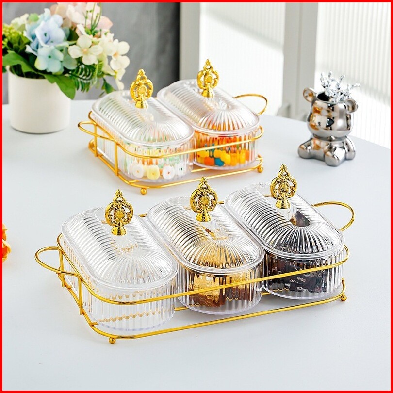 Toples Permen Toples Set Kotak Penyimpanan Buah Kering Kelas Atas Untuk Ruang Tamu Dan Ruang Teh Piring Pajangan Permen