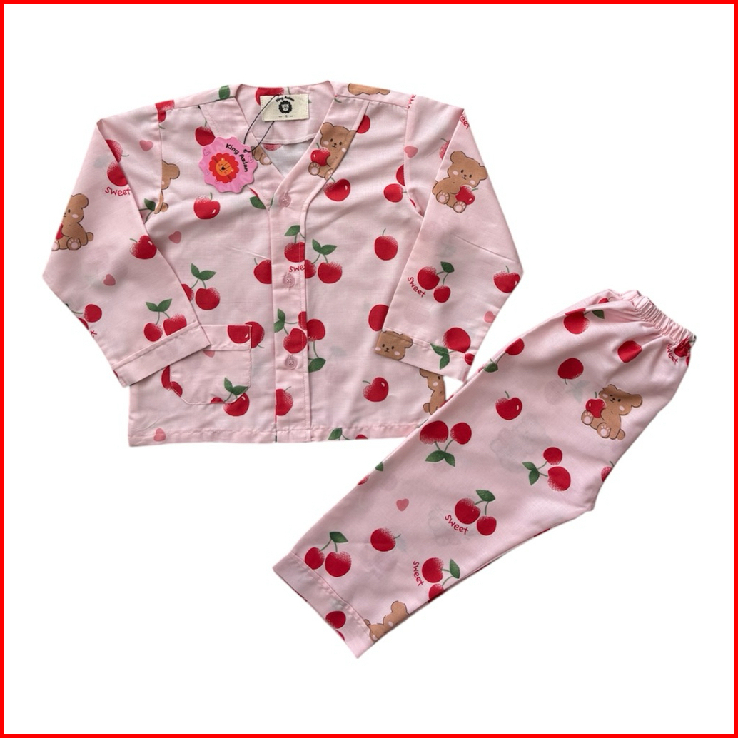 King Azlan Piyama Anak Tangan Panjang Perempuan Motif Cery Bear