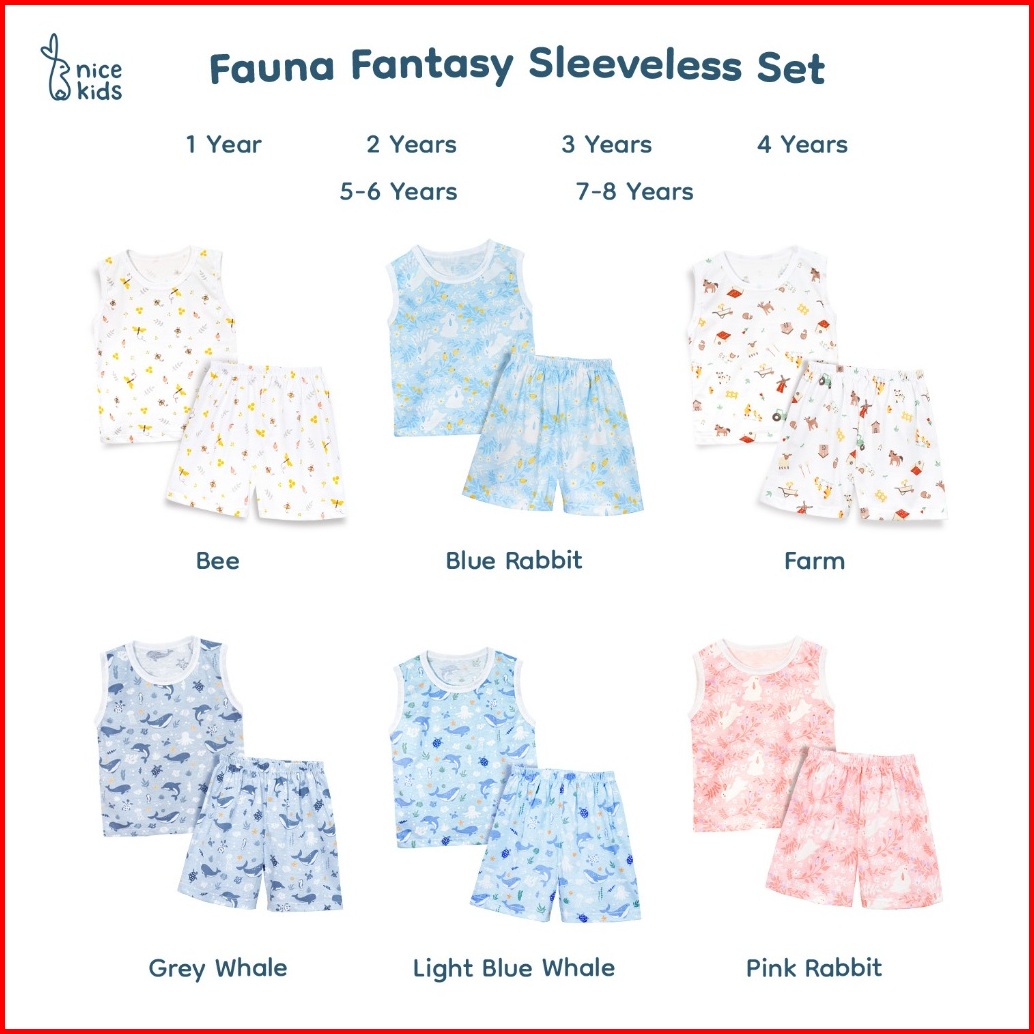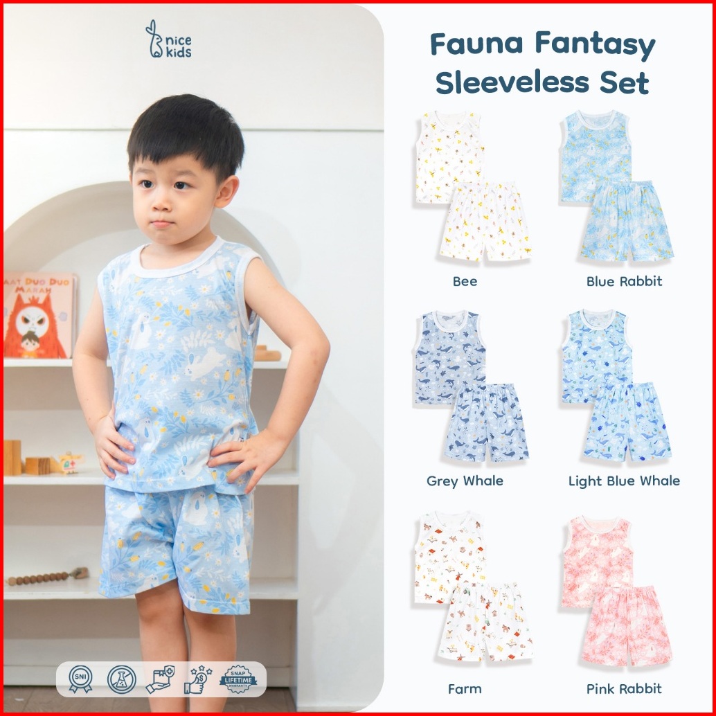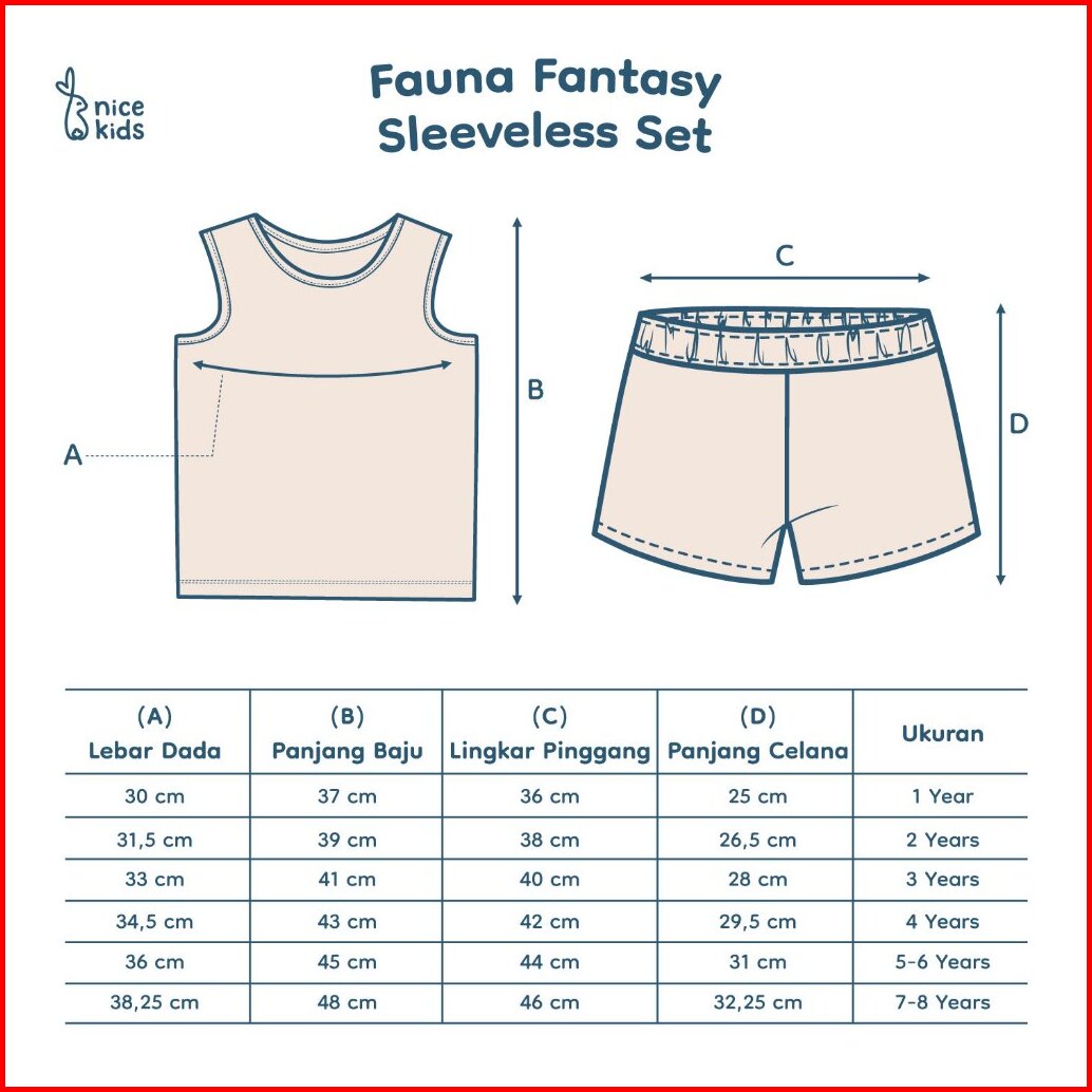 Nice Kids - Sleeveless Kids Pajamas Fauna Fantasi Collection Setelan Baju Piyama Tanpa Lengan