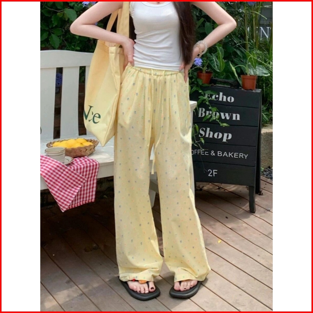 2toyoung Celana Panjang Santai Wanita Dengan Pola Kotak-kotak Dan Polka Dot Model Lebar Musim Panas Celana Wanita Kekini