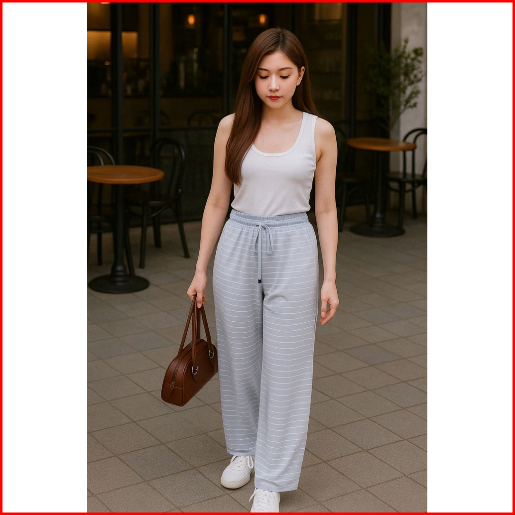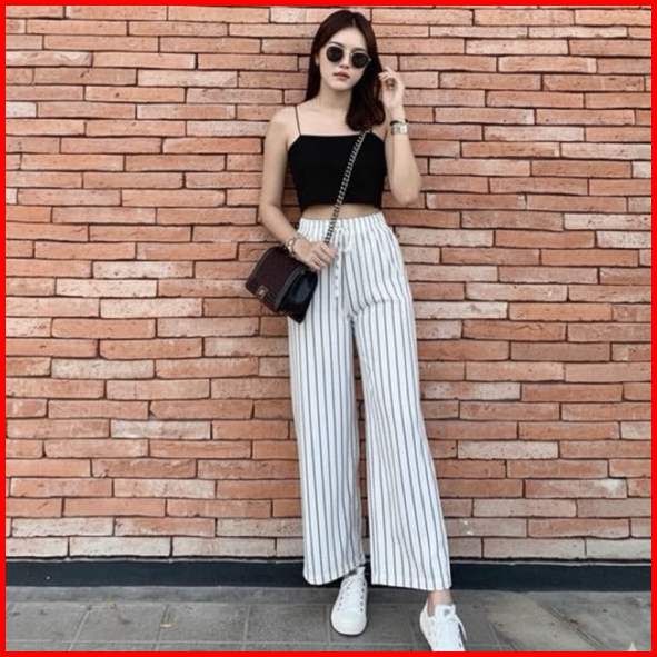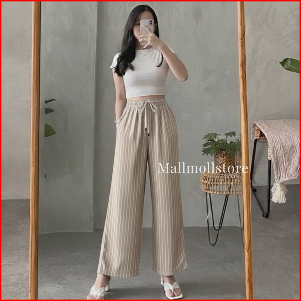 Everyday Pants - Stripe Pants Bangkok - Celana Panjang Wanita Baggy Kantor Kuliah Motif Garis Kulot Pinstripe - Celana F