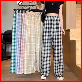 Tjm Cpg280 Celana Panjang Wanita Motif Kotak - Kotak Casual Tartan Plaid Long Pants Korean Fashion