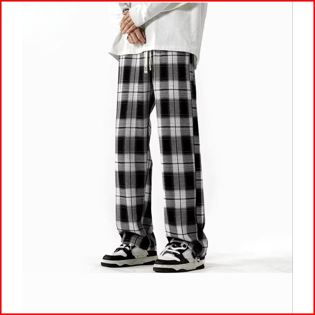 Celana Flanel Panjang Motif Kotak Celana Wanita Tartan Korea