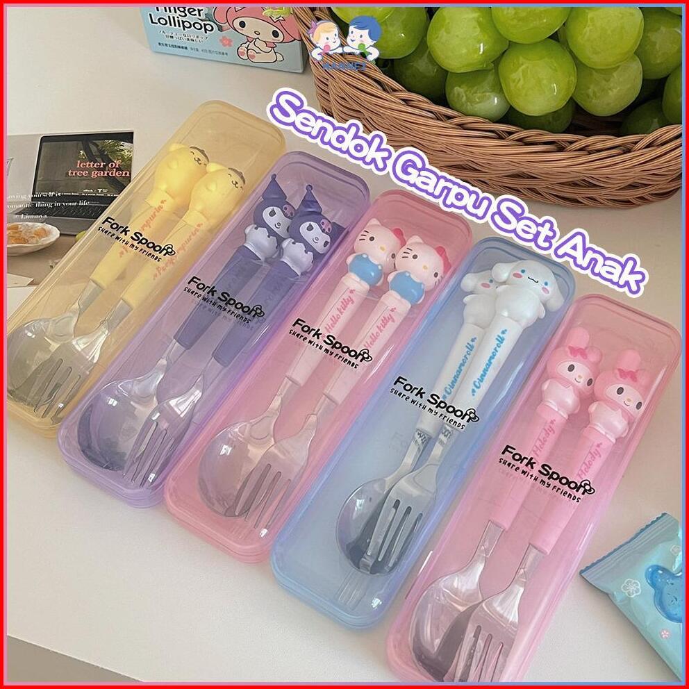 New Product Hannei Sendok Garpu Set Anak Stainless Peralatan Makan Anak Set