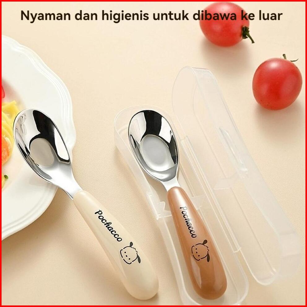 Cuci Gudang Stainless Sendok Termasuk Kotak Box Baby Spoon Portable Peralatan Makan Alat Makan Anak Travel