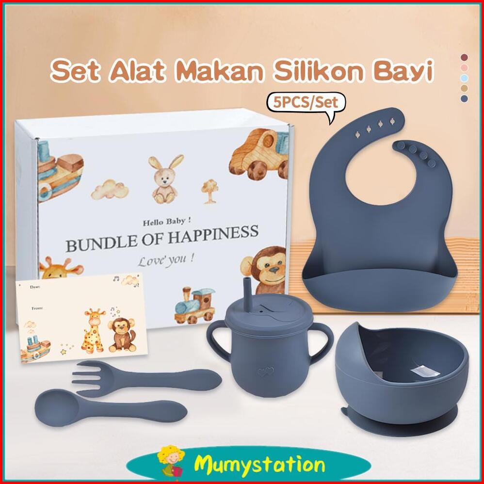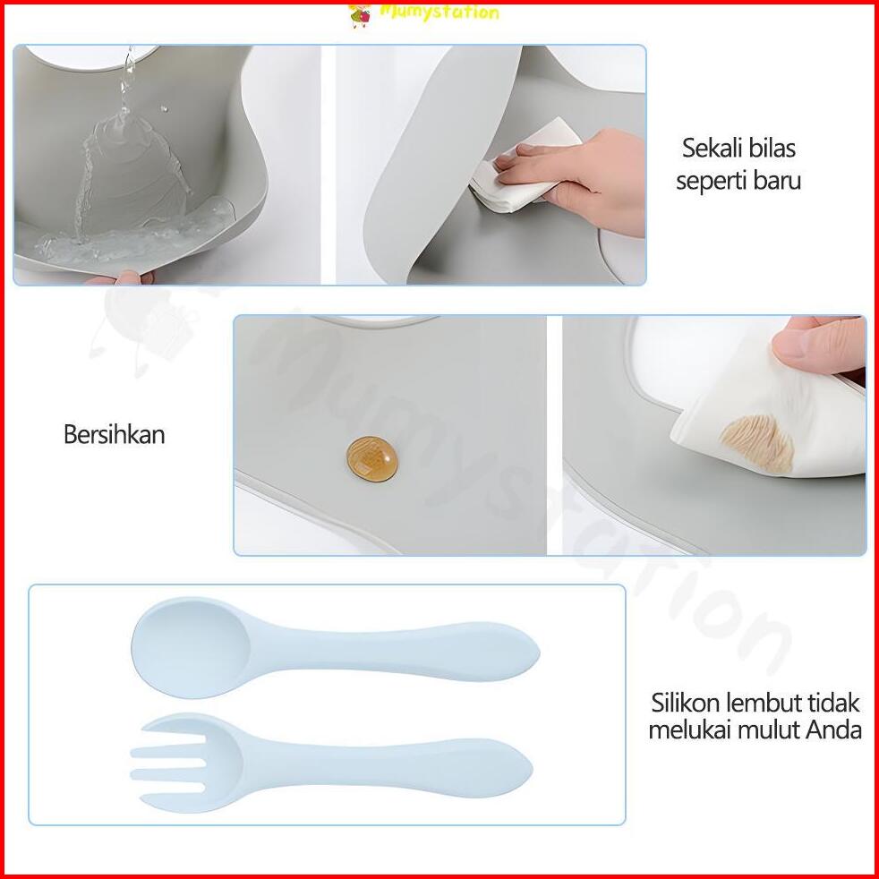 Viral Mumystation 5pcs Set Peralatan Makan Bayi Silicon Peralatan Makan Mpasi Bayi Lengkap Celemek Bayi Waterproof
