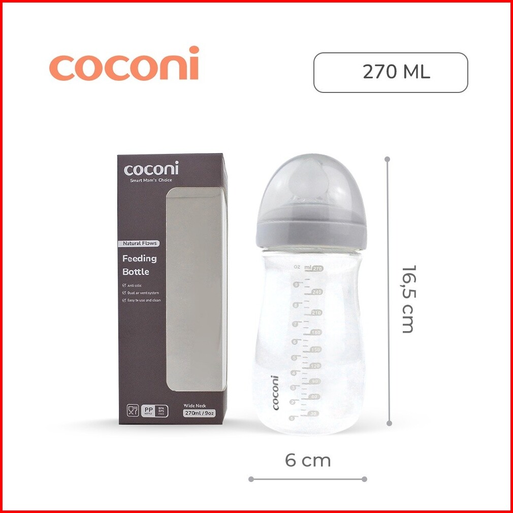 Coconi Wide-neck Feeding Baby Bottle 150ml 270ml Botol Susu Bayi Anti-colic Coconi Wide-neck Baby Bottle Nipple Teat Rep