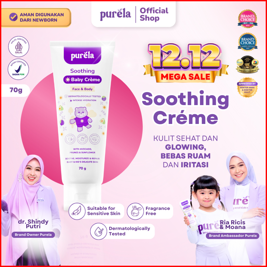Pilihan Ricis Dan Moana Purela Soothing Baby Creme 70 - Krim Mengatasi Gatal Biang Keringat Menghaluskan Mencerahkan