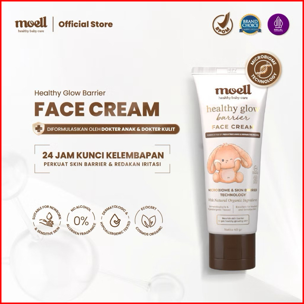 Moell Face Cream Healthy Glow Pelembab Wajah Anak Dan Bayi - Moell Krim Muka Skin Barrier Moisturizer 40gr