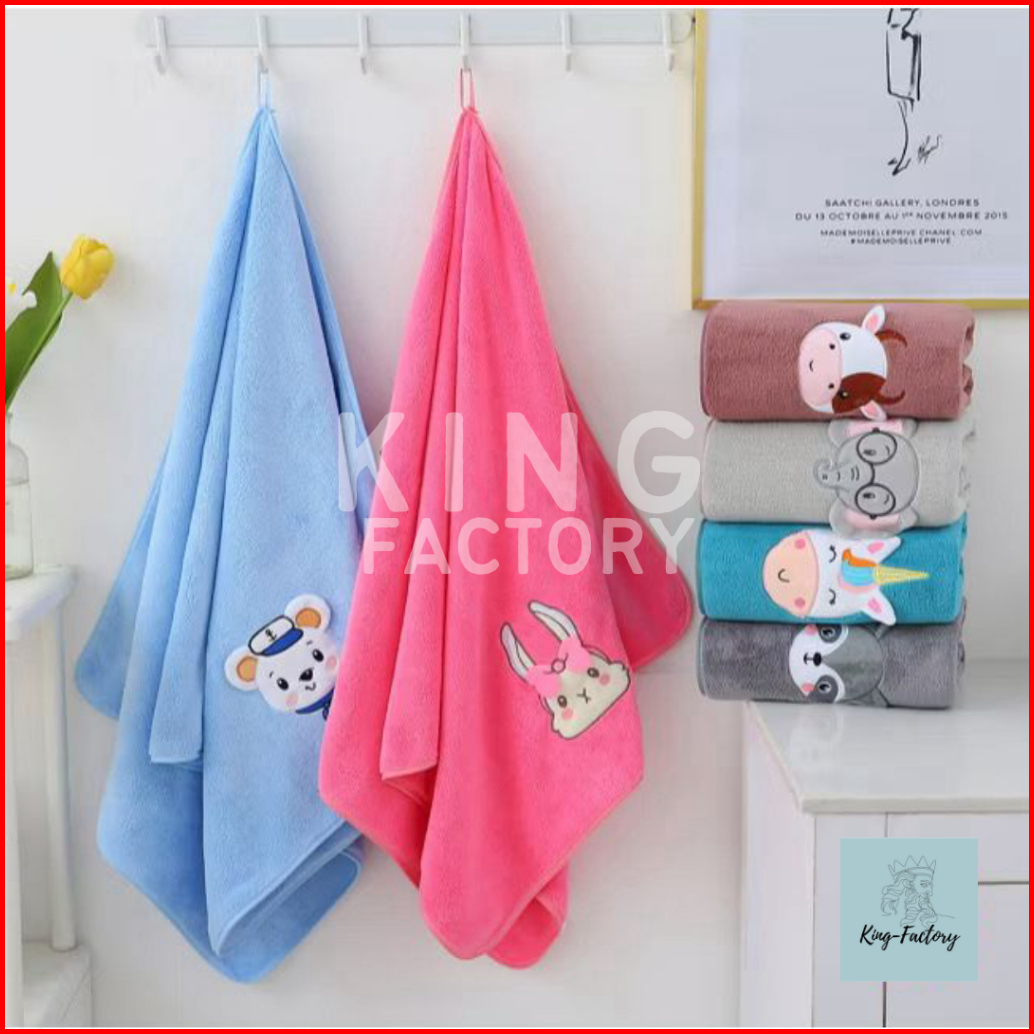 King-factory Handuk Mandi Microfiber 70x140 Bayi Anak Motif Baby Keledai Ruby Daya Serap Tinggi