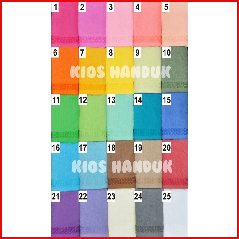 01 PINK LIST, 03 PINK BABY, 05 SALEM, 08 YELLOW, 11 PUPUS, 13 HIJAU BABY, 15 DKBLUE, 17 BIRU BABY, 18 COKLAT SEDANG, 21 UNGU SEDANG, 23 CREAM, 25 PUTIH, 06 Orange Sedang