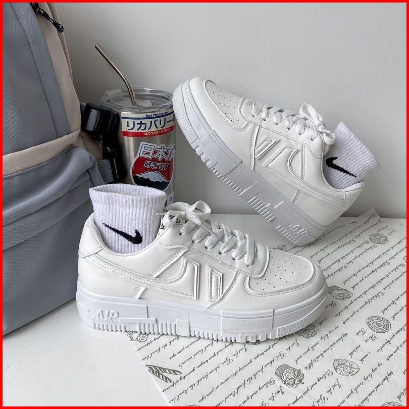 Sepatu Sneakers Wanita Sekolah Vl Sepatu Bertali Fashion Ringan Hitam Putih Shoes Sport Sneaker Olahraga
