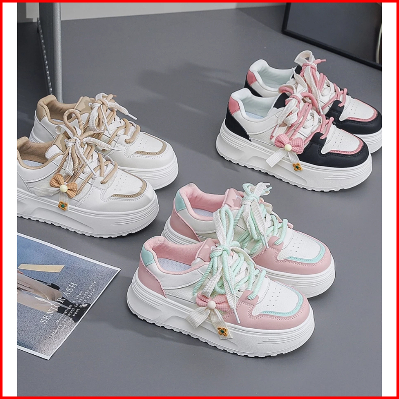Q551 Lurad Sepatu Wanita Unik Sol Tebal Tinggi Colorfull Warna Soft Sneakers Cewek Hangout Ootd