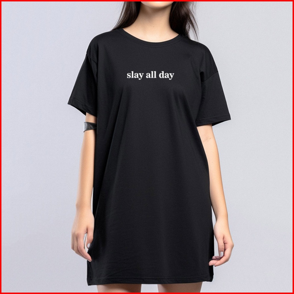 Ltf44 Loose Dress Kaos Oversize Daster Wanita Instacool Ld Tulisan Simple Slay All Day Hitam