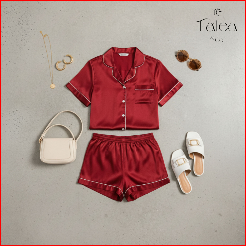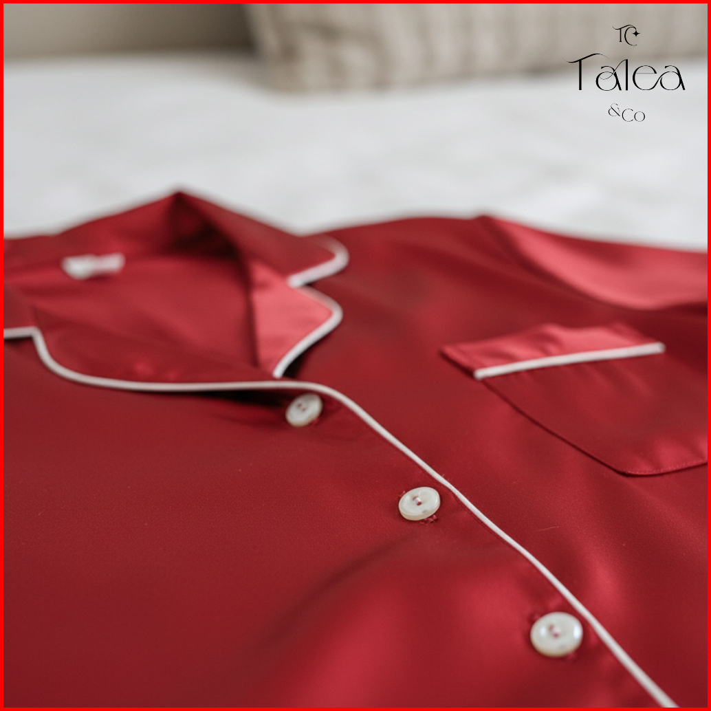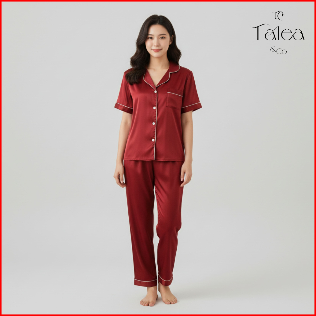 Piyama Wanita Lengan Pendek Pajamas Wanita Talea Co Organic Silk Maroon