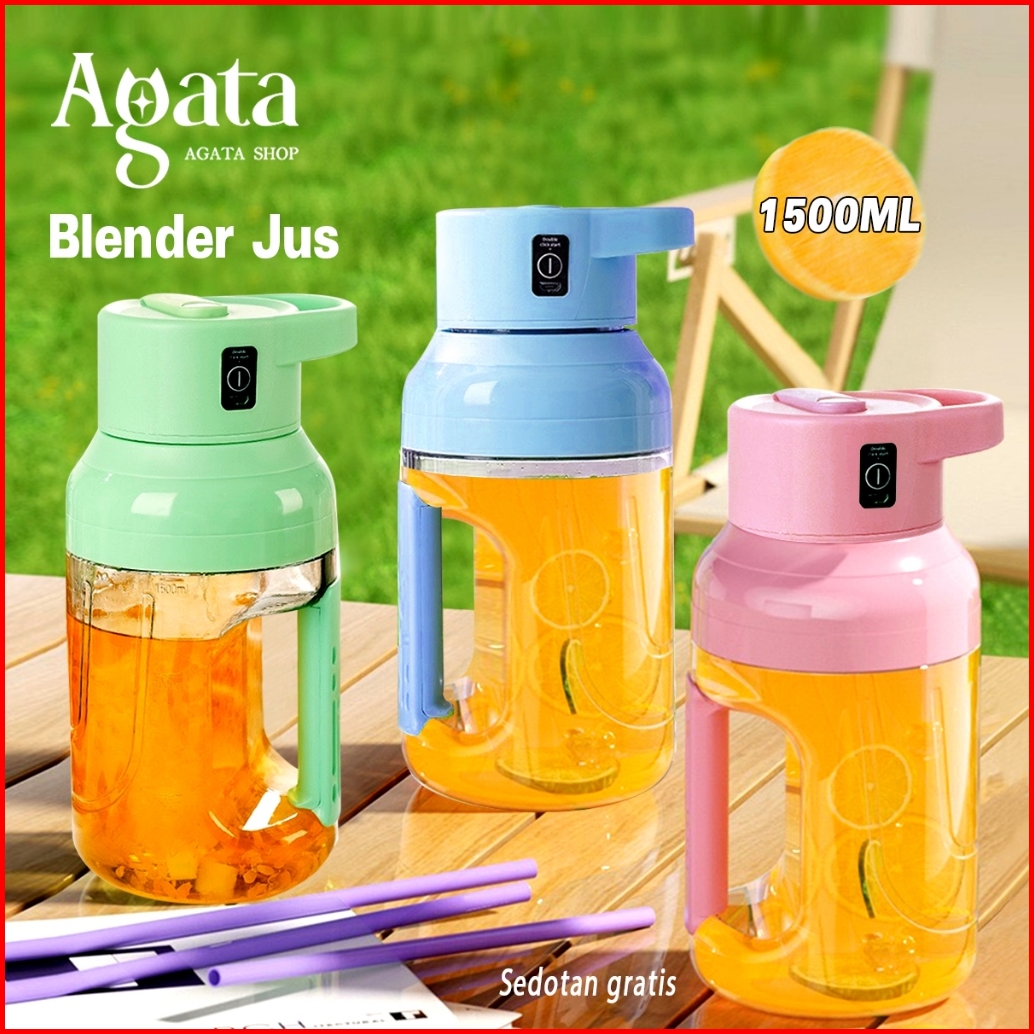Juicer Cup Botol Jus Blender Portable Wireless 1500ml Sedotan 8 Pisau Electeic Juicer Cup