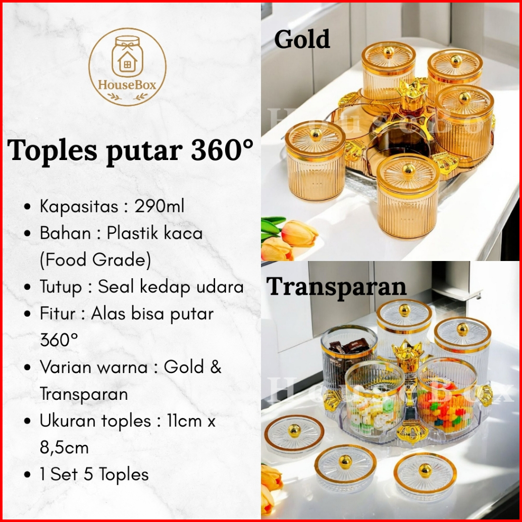 Housebox Toples Elegan Snack Kue Permen 5set Putar Yang Premium Mewah Estetik Multifungsi