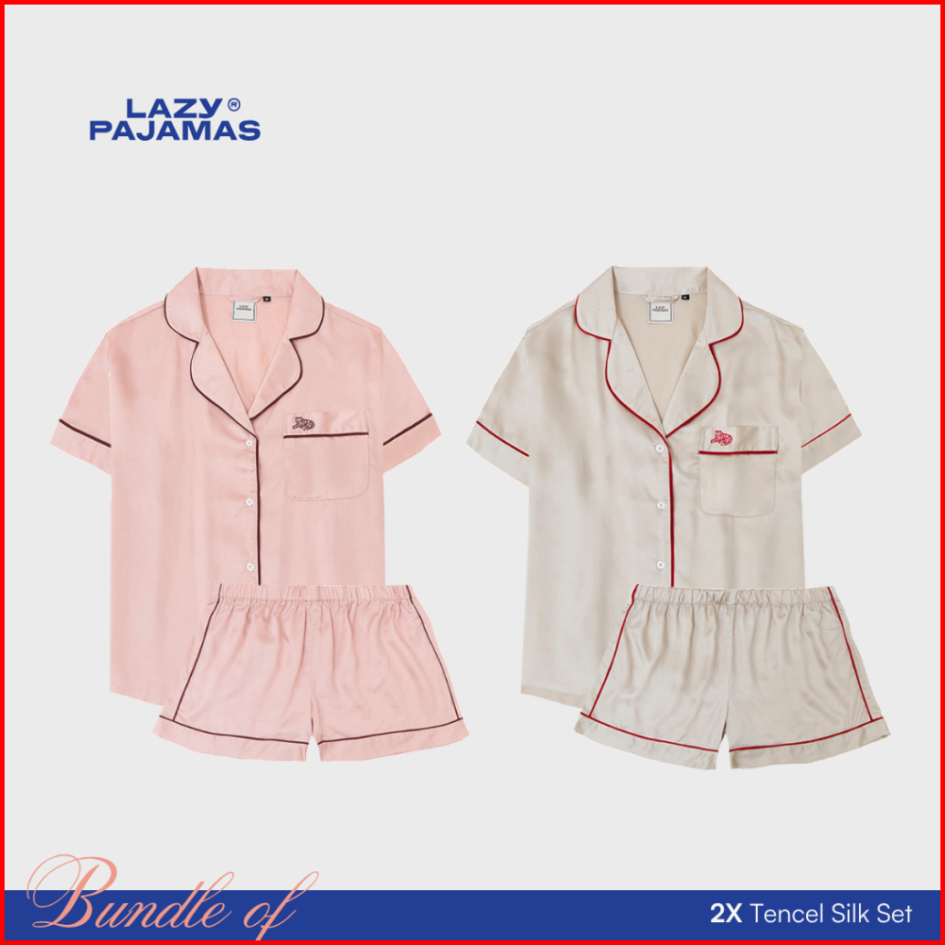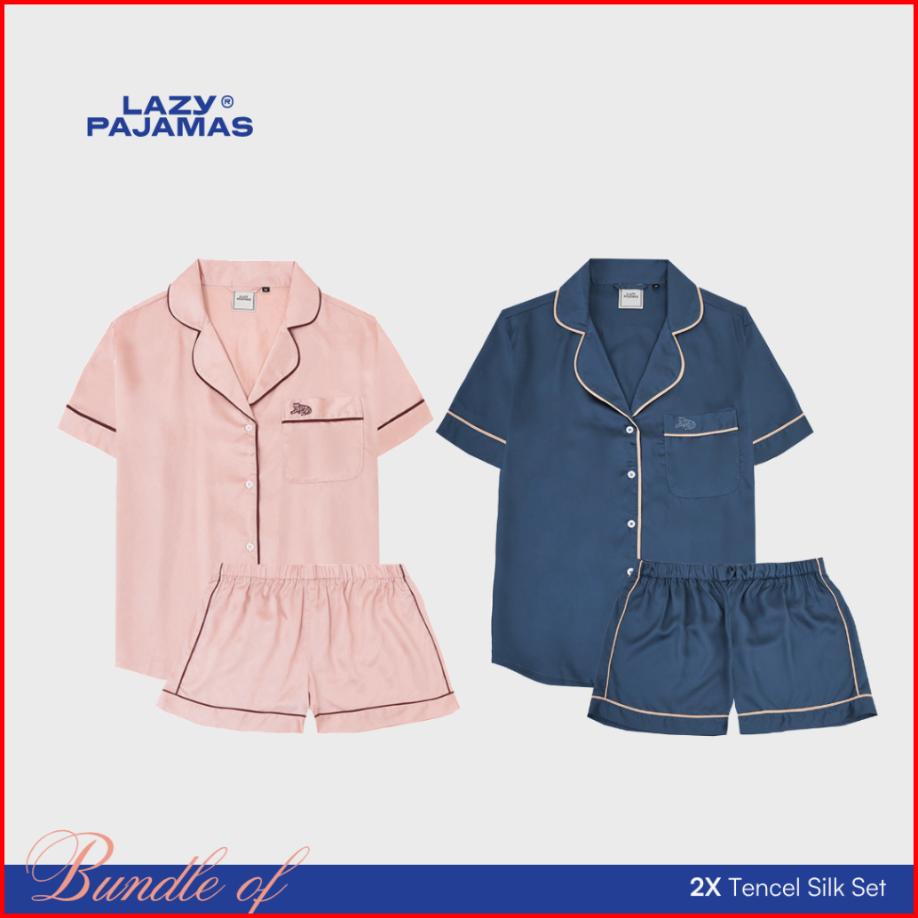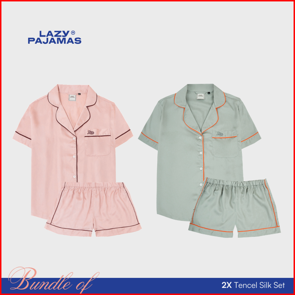 Lazy Pajamas Bundle Of 2 Tencel Silk Pajamas Set Piyama Baju Tidur