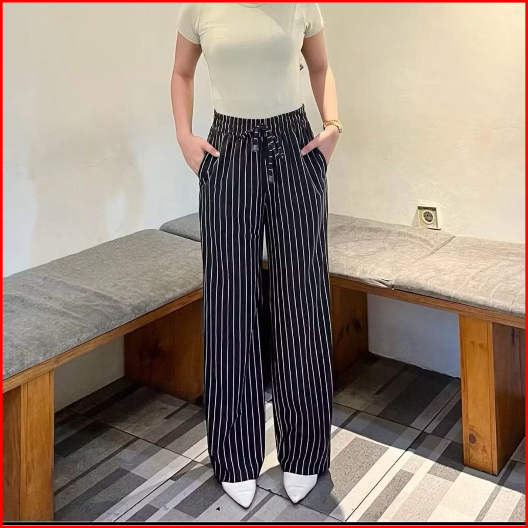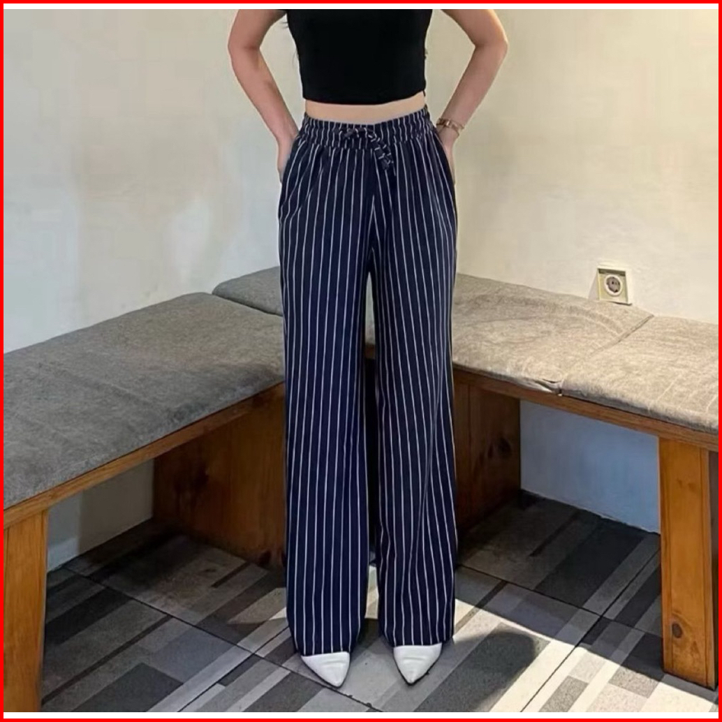 Everyday Pants - Stripe Pants Bangkok - Celana Panjang Wanita Baggy Kantor Kuliah Motif Garis Kulot Pinstripe - Celana F