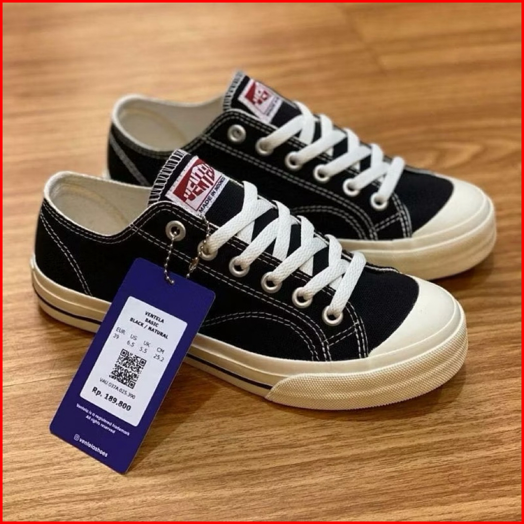 Ventela Public Low Black Natural Sepatu Sekolah Anak Hitam Sneakres Pria Wanita Premium