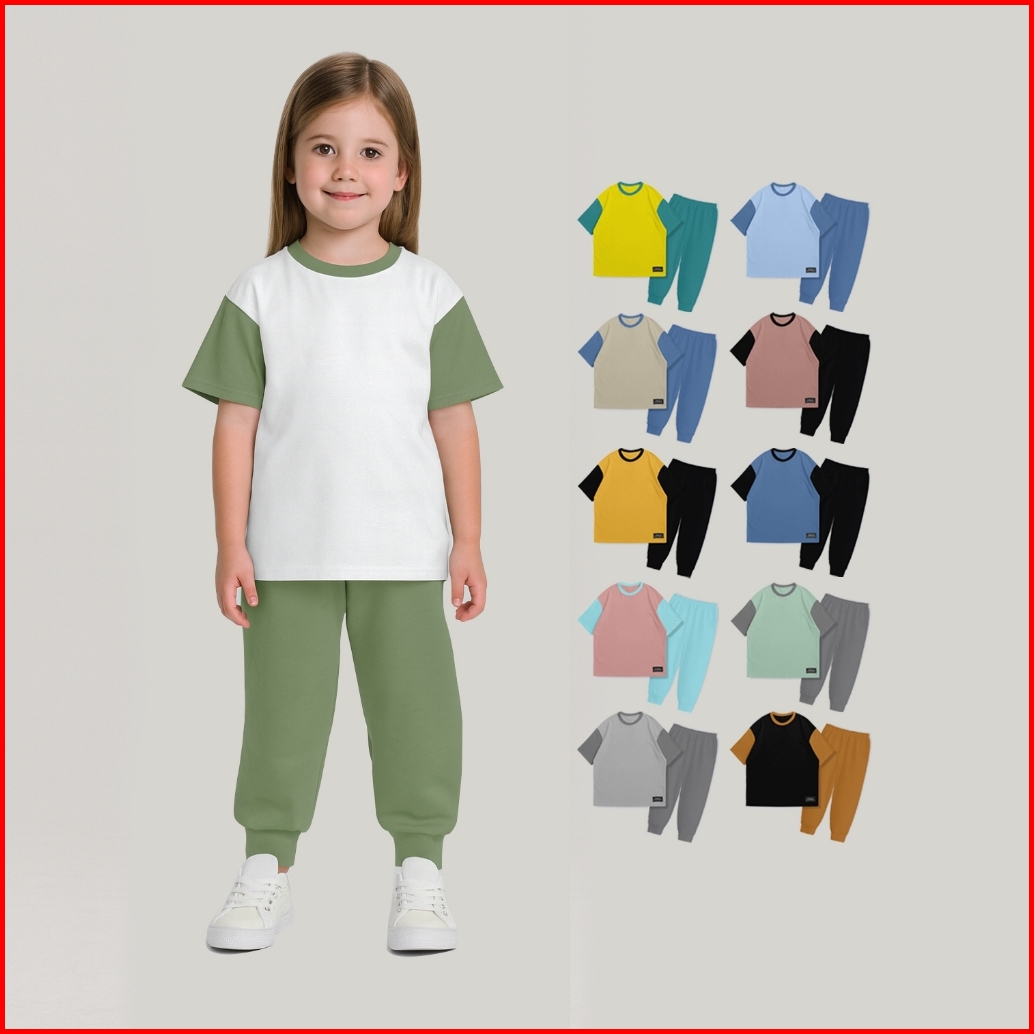 Thanksmother Piyama Anak Laki Laki Perempuan Two Tone Color Block