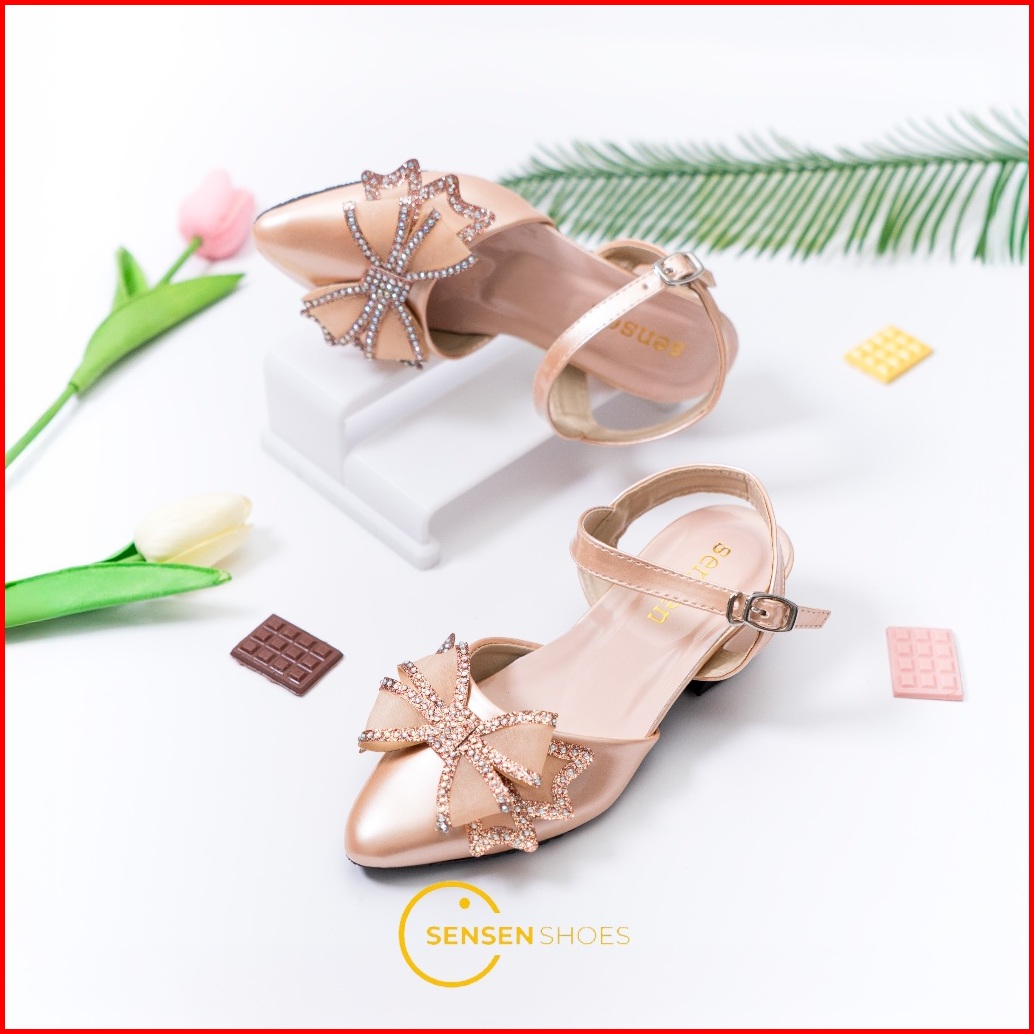 Sensen Isabella Sepatu Peta Anak Perempuan Hak 3cm Pita Glossy Tali Belakang Size 26-35 Sol Karet Anti Slip